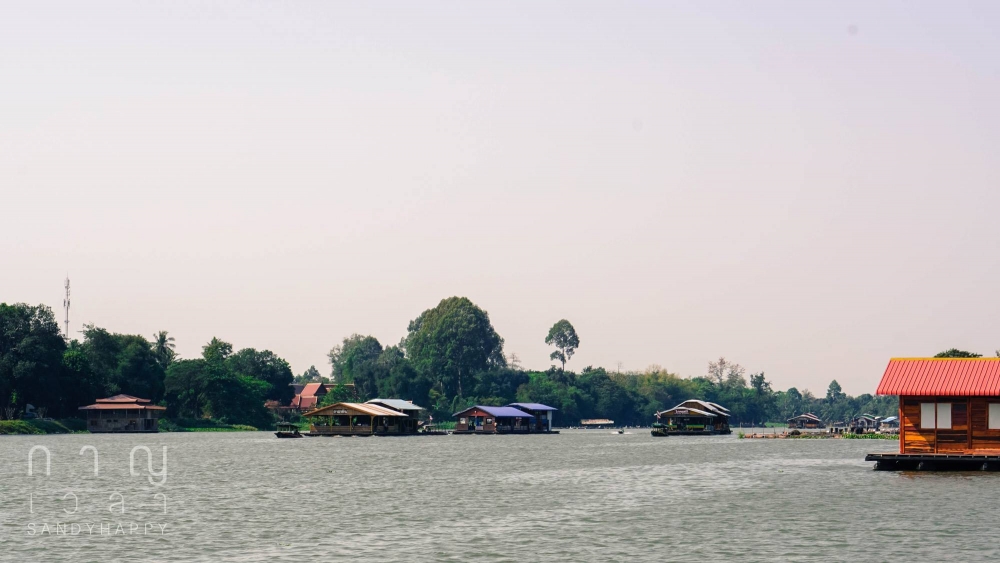 แพเปิดเสียงเพลงดังมากล่องผ่านไป ขัดกับภาพอันสุทรีย์ตรงหน้าอยู่เหมือนกัน บางทีก็มีเรือขายของจอดเทียบแพ เพื่อขายของให้กับคนบนเรือ