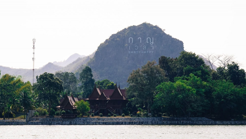 วิวตรงข้ามที่พักเรา มีบ้านทรงไทยขนาดใหญ่ สวยงามร่มรื่นมากๆ ด้านหลังเป็นภูเขาสูง ดูเหมือนฉากในภาพวาดเลย นั่งชิลดูวิว ดูเรือผ่านไปมา