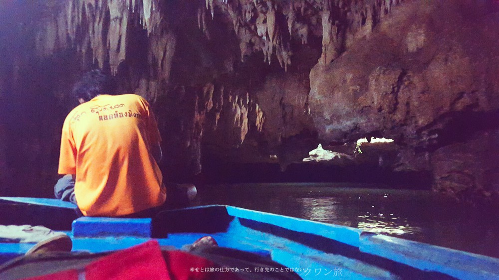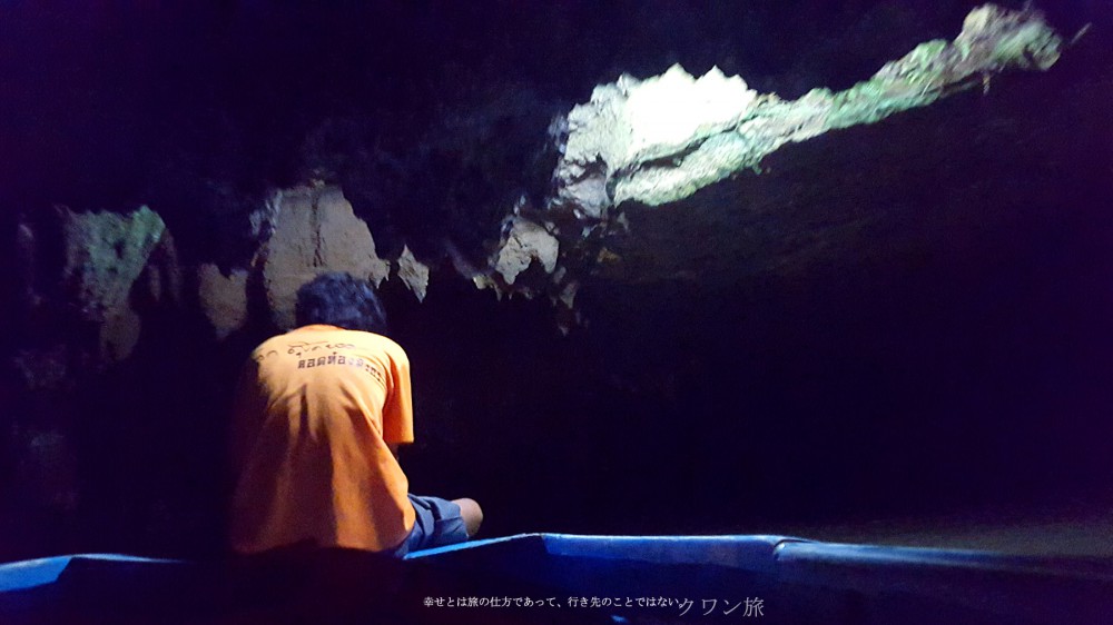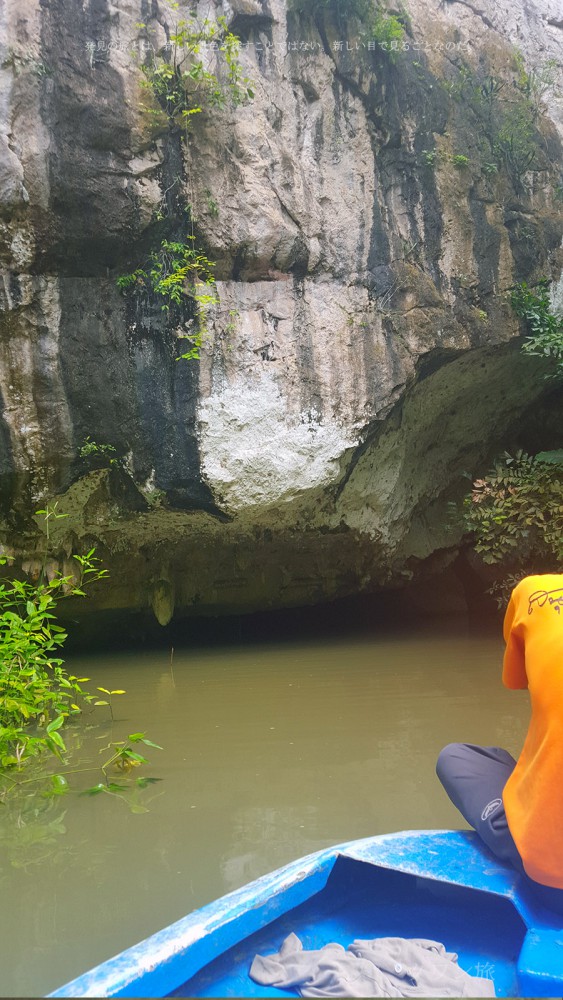 คือว่า พี่ไกด์แกทรหดมา เพราะนี่ไปกันแค่สองคน เรือมันเลยไม่หนักพอ บวกกับน้ำขึ้นสูง ทำให้มันอยู่ใกล้เพดานหินข้างบนมาก พี่ไกด์คือคนที่ ดันเพดานหิน เพื่อให้เรือมันจม เเล้วไหลไปข้างหน้าต่อได้ ใครไปนี่ต้องฟังพี่ไกด์แกอย่างแรง ถ้าไม่อยากได้บาดเเผลกลับบ้านไป