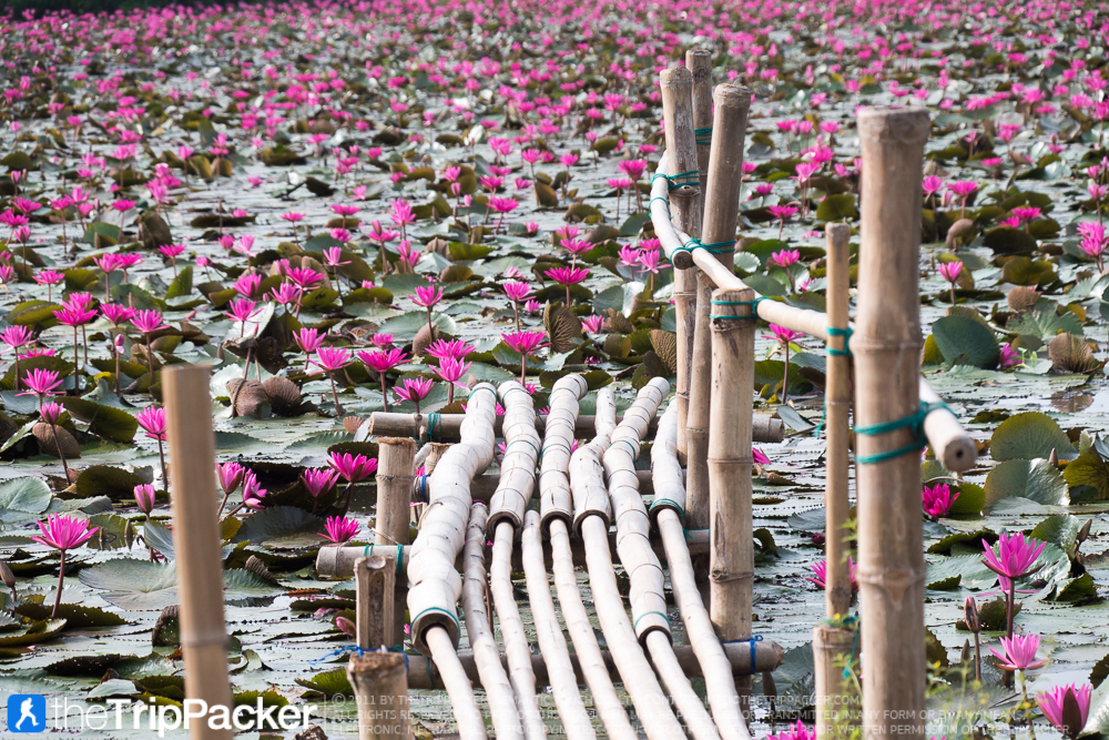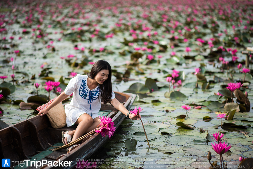 ถ่ายรูปเล่นสักพัก ก็ได้ยินเสียงจากชาวบ้านว่า "วันนี้มีขนมที่ทำจากสายบัวมาขายด้วยนะจ้ะ" เรื่องของกินไม่มีพลาด จัดมาสักกล่อง แถมอุดหนุนบัวแดงที่ชาวบ้านเก็บ และมัดเป็นกำ มาไว้เป็นพร็อพสำหรับถ่ายรูปอีกซักหน่อย**แนะนำว่า ควรมาช่วงเช้า เวลา 7.00-10.00 น. นะครับ ถ้าหลังช่วงเวลานี้ไป นอกจากจะร้อนแล้ว บัวแดงก็จะหุบไม่บานสวยเหมือนช่วงเช้าอีกด้วย