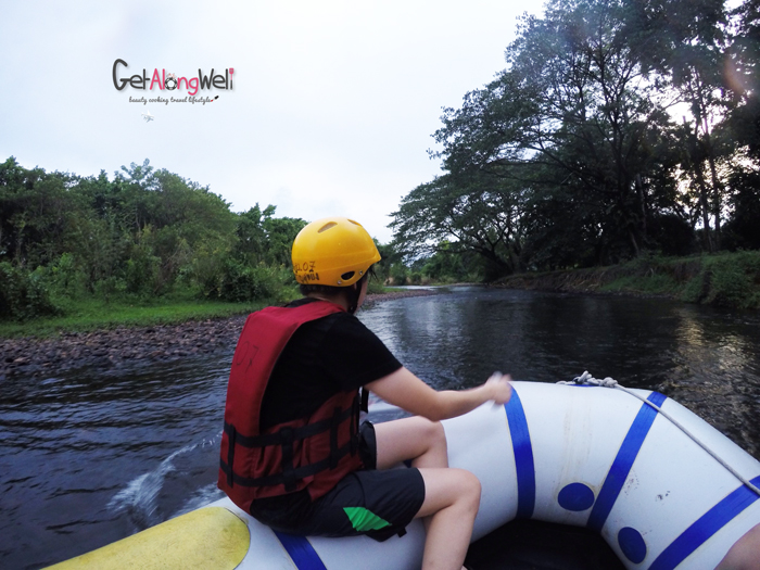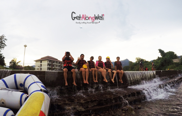 ล่วงเลยมาจนเย็นแล้ว เรายังมีอีกหนึ่งโปรแกรมที่มาที่นครนายกต้องมาสัมผัสให้ได้ นั่นคือล่องแก่งนั่นเอง เราไปติดต่อล่องแก่งจากร้านอาหารที่เราเข้าไปทานเป็นประจำเวลามาที่นี่ ชื่อร้านแพธารน้ำ ติดต่อล่องแก่งผ่านร้านอาหาร ราคาค่าบริการ 1500 บาท/ลำ(ติดต่อกับตัวล่องแก่งเลยจะถูกกว่านี้) ฝนก็กำลังจะตก เอาไงดีน้อ ถามกับทางพนักงานว่า ใช้เวลานานเท่าไหร่ ทางนั้นตอบว่าประมาณครึ่งชั่วโมงก็เสร็จแล้วครับ ก็เลยตอบตกลงไปล่องแก่งตามแพลนที่วางไว้ ที่ไหนได้ ใช้เวลาเกือบ 2 ชั่วโมง !!!!