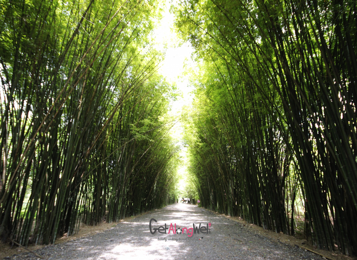 พิกัดแรกของเรา ซุ้มสวนไผ่แห่งวัดจุฬาภรณ์วนาราม ขับรถมุ่งหน้าไปทางนครนายก แต่กลับรถในช่วงของ อ. บ้านนา จากนั้นเลี้ยวเข้าซอยไปประมาณ 800 เมตร สามารถเปิด google map พามาถูกแน่นอนค่ะ ที่เลือกมาที่นี่เพราะอยากจะมีความเป็นญี่ปุ่นกะเค้าบ้าง ที่นี่มีซุ้มสวนไผ่ยาวๆ สวยมากเลยค่ะ