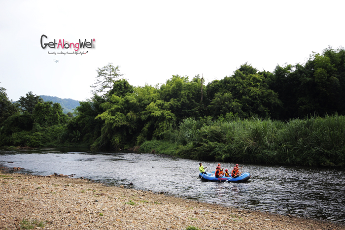พี่ที่พายเรือพาเราล่องแก่งบอกว่า วันนี้น้ำในเขื่อนยังไม่ปล่อยนะครับ เอิ่มมมมม!!!!! แล้วจะสนุกไหมเนี่ย ต้องมาประมาณเดือน กรกฎาคม ถึงจะเป็นช่วงที่เหมาะกับการล่องแก่งที่สุด แต่ ณ ตอนนี้ เราลงเรือลำเดียวกันแล้ว เราก็ต้องไป กลายเป็นล่องเรือชมธรรมชาติค่า