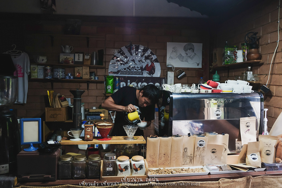 สนุกสนานกับการเล่นน้ำพอแล้ว ก็ไปอาบน้ำเปลี่ยนเสื้อผ้าที่บ้านพี่กริช ก่อนกลับพี่กริชชวนไปชิมกาแฟลาเปี้ยนที่ร้าน ซึ่งเราจอดรถไว้ที่นั้น รสชาติกาแฟกลมกล่อมอร่อยมาก