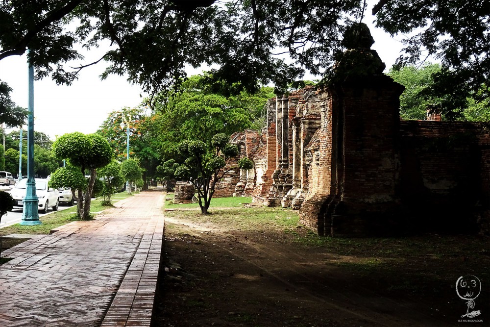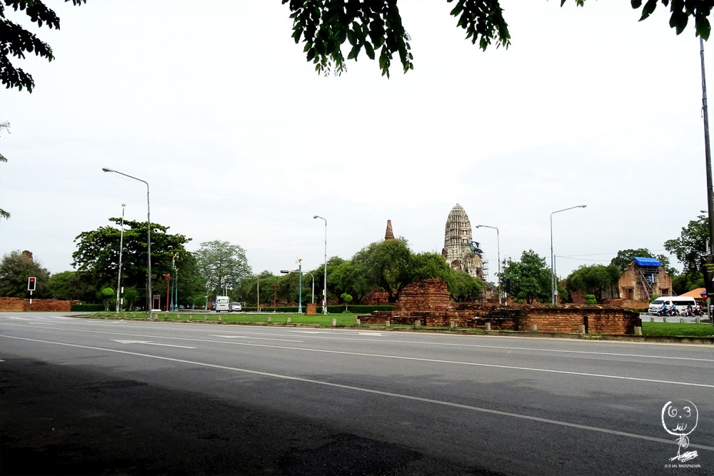 ..เดินจนเหงื่อเต็มแผ่นหลัง ก็ถึงวงเวียน(อะไรไม่รู้) เป็นสถานที่ที่สามารถมองเห็นวัดราชบูรณะ ที่กำลังบูรณะอยู่ และวัดมหาธาตุได้ จากสภาพแล้ว ก็ดูเหมือนบังคับให้เราต้องไปวัดมหาธาตุ