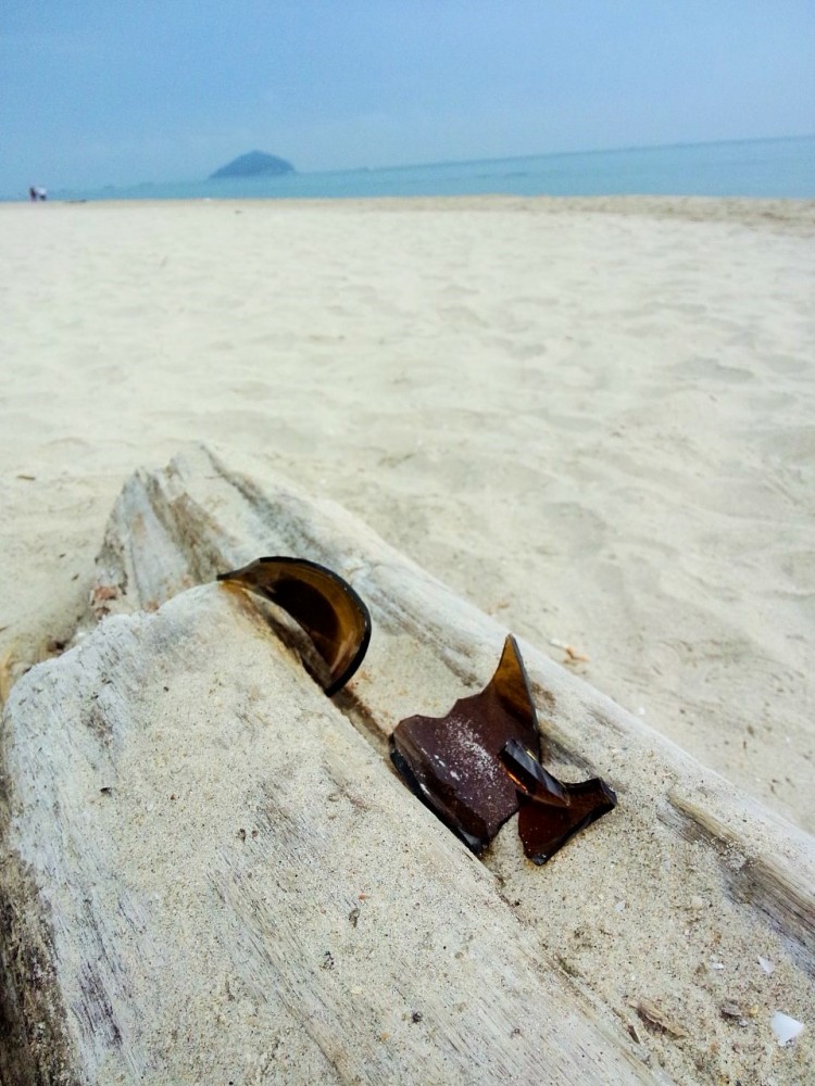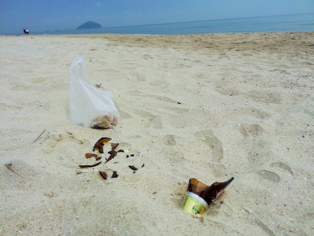 นึกเสียดายที่นักท่องเที่ยวบางคนไม่มีวัฒนธรรมยังคงทิ้งเศษขวดและเศษอาหารไว้เป็นร่องรอยการมาเยี่ยมเยือน ทำให้นึกย้อนสมัยเรียนมัธยมที่จังหวัดได้ปลูกฝั่งให้เยาวชนรักทะเลและชายหาด โดยมีกิจกรรมรวมตัวกันทั้งหน่วยงานราชการและสถานศึกษาทุกระดับเดินเก็บขยะบริเวณชายหาดและแหลมสมิหลาเป็นระยะทางเกือบ 10 กิโลเมตร