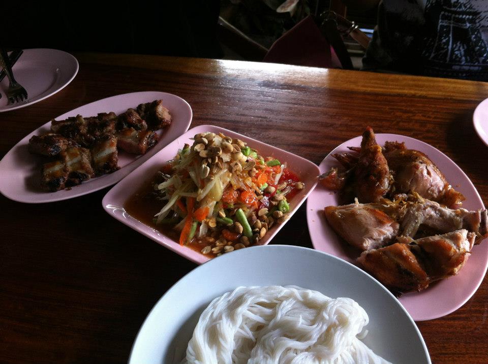 มื้อแรกที่โขงเจียม ชื่อร้านส้มตำหน้าศาล ถามคนแถวนั้นเค้าเรียกแบบนี้กัน อาหารอร่อยมาก โดยเฉพาะซี่โครงหมูย่าง อร่อยเวอร์ สั่งสองรอบติด ราคาก็ถูกมากทีเดียว ถ้าได้ไปอีกจะต้องไปโดนอีกรอบจงได้