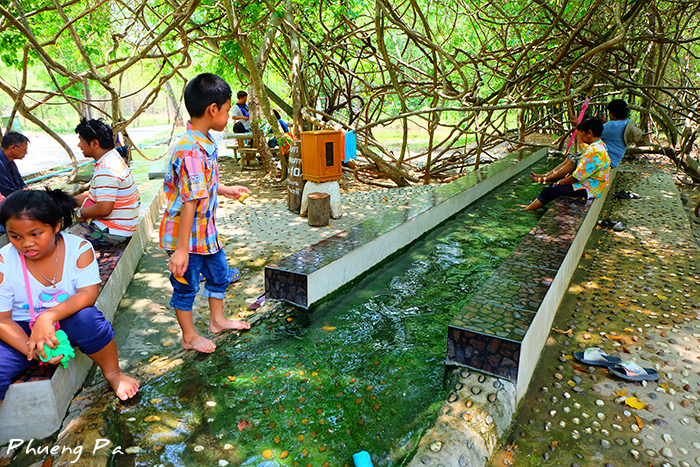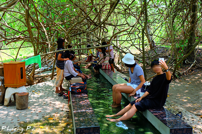 หากอยากพิสูจน์ว่าร้อนแค่ 49 องศานี่จิ๊บๆ ก็มีธารน้ำเล็กๆ ที่ชาวบ้านทำไว้ให้แช่เท้าทดสอบดูค่ะ