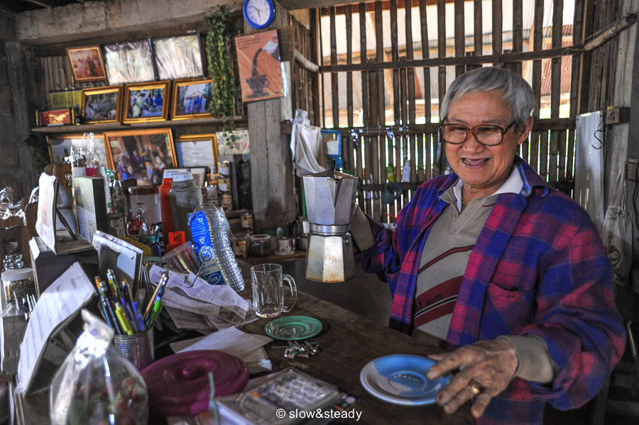จิบกาแฟ และกินข้าวเช้าที่บ้านลุงปาละ