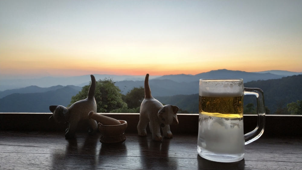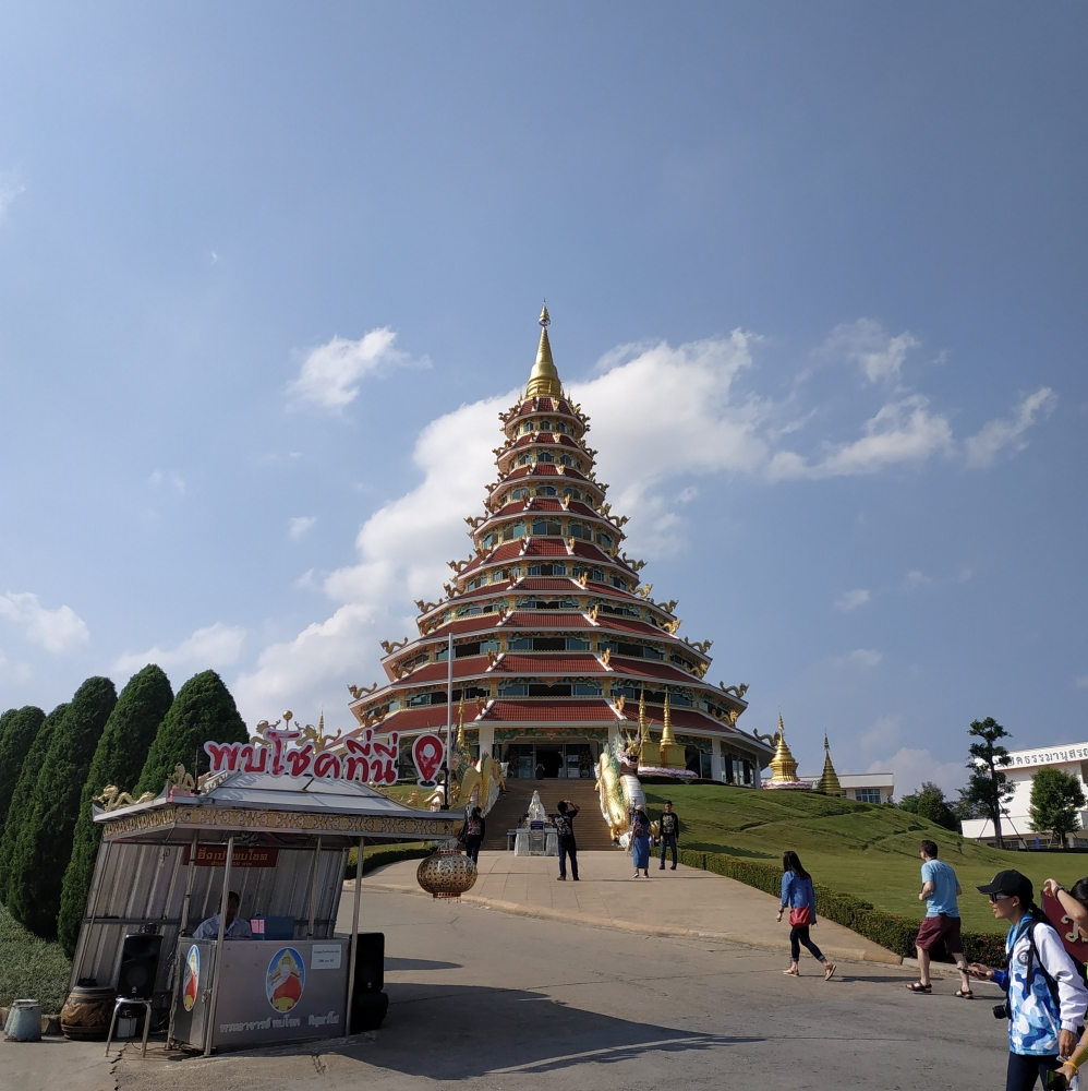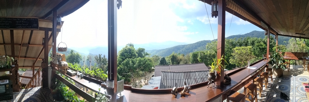 ดื่มด่ำบรรยากาศสักพัก ชิมไวน์กันสักนิดก็เดินทางต่อไปยัง พระตำหนักดอยตุง โชคดีของเราอย่างแรง ที่จอดรถถึงหน้าทางเข้า สบายเลย แล้วก็ไปเดินกาดดอยตุงสักนิดหาไรกิน ลงไปหน่อยจะมีร้านอาหารด้านขวามือเดินขึ้นมานิด ร้านธรรมดาเราไม่หวังไรมาก แต่ครับแต่ เตี๋ยวเนื้อเปื่อยน้องบอกอร่อยมาก(คนนี้พูด ถือเป็นกรันตีเลย)ผมกินข้าวซอยไก่ เห้ย อร่อยโคตร ผักดองเหมือนแช่น้ำไรไม่รู้ แต่ กัดแล้ว มันช่าง.....อธิบายไม่ถูก ต้องลองเอง.. จากนั้นก็เดินเล่นในกาด เจอเสื้อคลุมสไตล์ญี่ปุ่นผสมม่อห้อม ใส่ได้พอดี สวยด้วยเลยซื้อ 150บาท(เพื่อนซื้อที่ตีนดอย 250บ. 555)