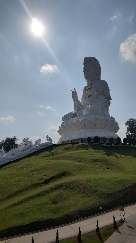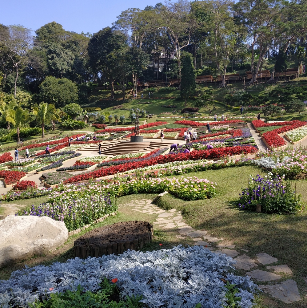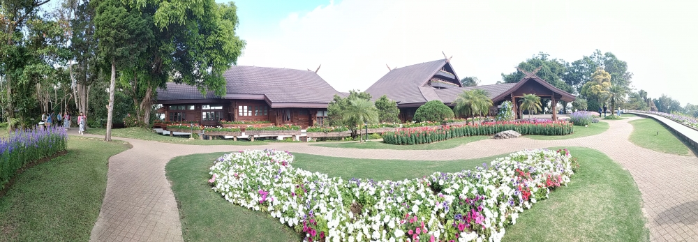 ดื่มด่ำบรรยากาศสักพัก ชิมไวน์กันสักนิดก็เดินทางต่อไปยัง พระตำหนักดอยตุง โชคดีของเราอย่างแรง ที่จอดรถถึงหน้าทางเข้า สบายเลย แล้วก็ไปเดินกาดดอยตุงสักนิดหาไรกิน ลงไปหน่อยจะมีร้านอาหารด้านขวามือเดินขึ้นมานิด ร้านธรรมดาเราไม่หวังไรมาก แต่ครับแต่ เตี๋ยวเนื้อเปื่อยน้องบอกอร่อยมาก(คนนี้พูด ถือเป็นกรันตีเลย)ผมกินข้าวซอยไก่ เห้ย อร่อยโคตร ผักดองเหมือนแช่น้ำไรไม่รู้ แต่ กัดแล้ว มันช่าง.....อธิบายไม่ถูก ต้องลองเอง.. จากนั้นก็เดินเล่นในกาด เจอเสื้อคลุมสไตล์ญี่ปุ่นผสมม่อห้อม ใส่ได้พอดี สวยด้วยเลยซื้อ 150บาท(เพื่อนซื้อที่ตีนดอย 250บ. 555) เข้าเขตพระราชฐานซื้อตั๋วเข้าชมพระตำหนัก(90)และ สวนแม่ฟ้าหลวง(90) พอดีไกล้เวลารอบ 11.30 เหลือ10 นาที เลยต้องรีบเดินกันหน่อย 500เมตรเองทันน่า เอาเข้าจริงทางขึ้นเขาครับท่าน จ๊ากเลย เอาไปหนึ่งเหนื่อย ดีน๊ะอากาศไม่ร้อน เข้าไปชม เห็นห้องทรงประทับ วิวที่ระเบียง ความเป็นอยู่ของพระองค์ท่านที่เรียบง่าย ความสง่างามของสถานที่ ให้เราทราบซึ้งคิดถึงพระมหากรุณาธิคุณของพระองค์ท่านขึ้มาทันที
