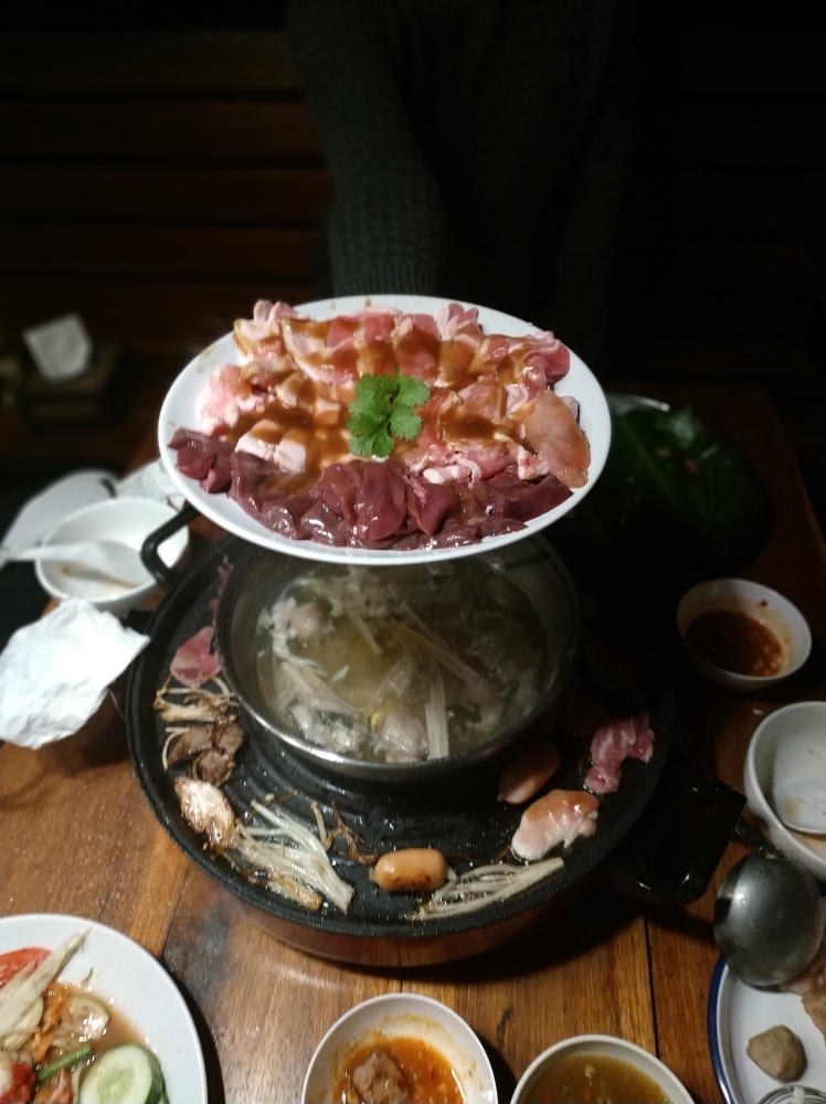 นักรวมตัวกันที่บ้านน้องแถวสุวรรณภูมิ ช่วงบ่าย3โมง(ได้เอารถไปจอด แล้วง่ายตอนกลับมาถึง) พอได้เวลาที่ดีก็เรียกรถมารับ เดินทางสู่ บ.สมบัติทัวร์(ถนนวิภาวดี) เพื่อขึ้นรถเวียงพิงค์บัส (VIP20ที่นั่ง) รอบ 19.00น.กว้างขวางสบายมาก ขนมน้ำแจกมีพร้อม แวะกินข้าว มีทั้ง ข้าวต้มเครื่อง ข้าวต้มกับ ข้าวสวยกับ บอกได้ว่าอร่อยทุกอย่าง