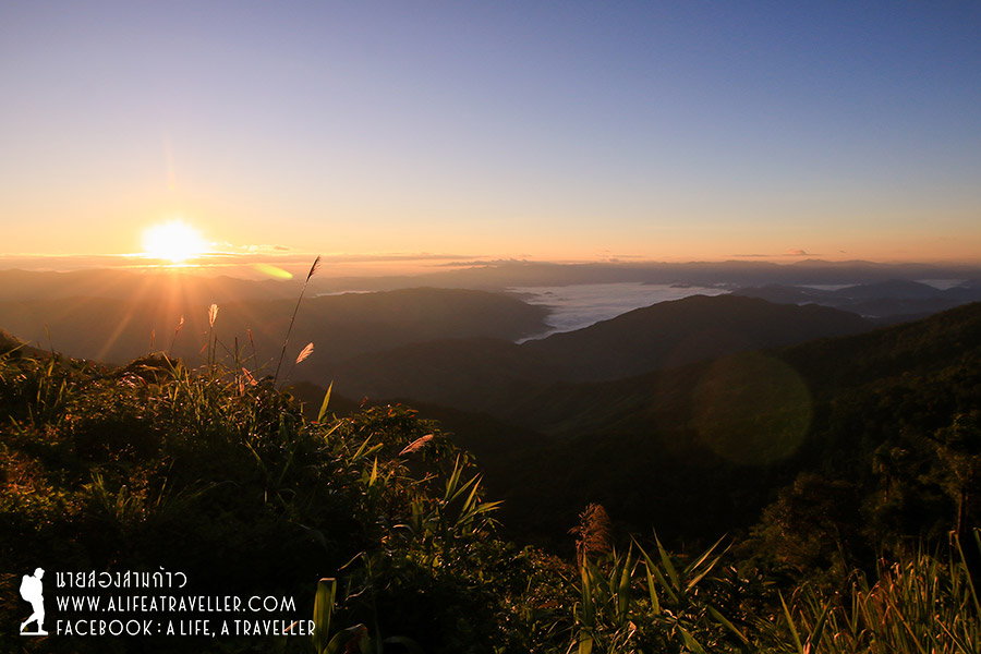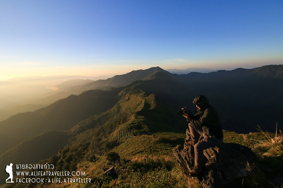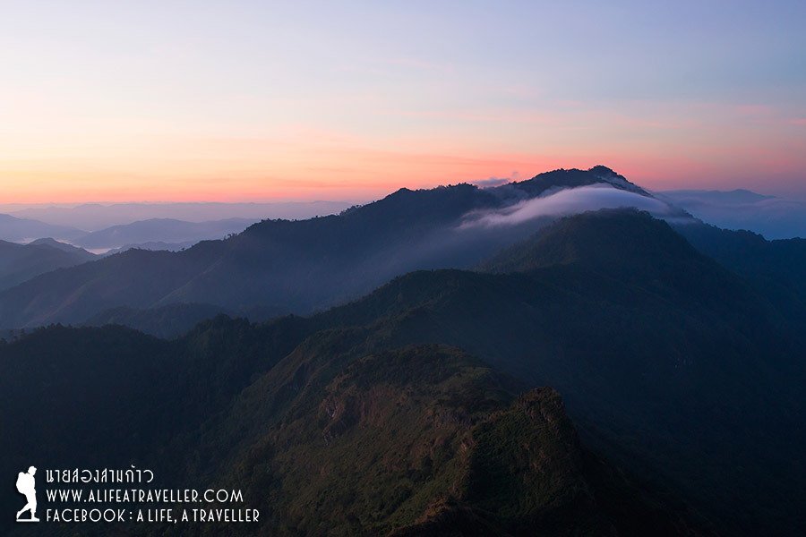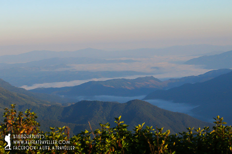 การนอนที่จุดชมวิวดีอย่างหนึ่งคือไม่ต้องตื่นเช้ามาก หกโมงหน่อยๆ เพื่อนต้องร้องเรียกปลุกว่าฟ้ากำลังสวย นั่นแหละผมถึงค่อยดีดตัวออกจากถุงนอน
