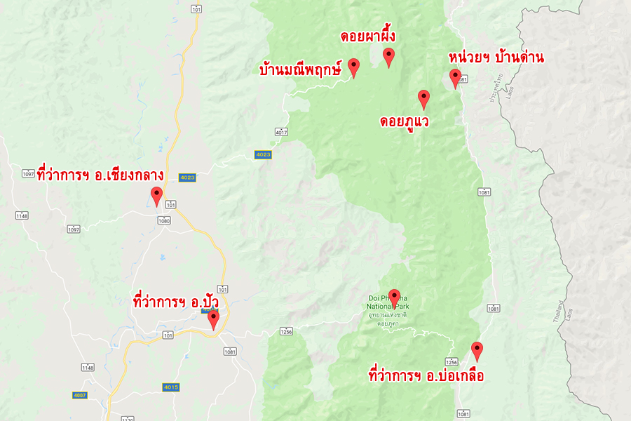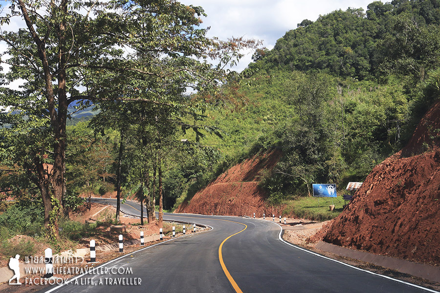 เส้นทางคือเราต้องย้อนใช้ถนน ทล.1256 กลับไปถึงตัวอำเภอปัว จากนั้นเลี้ยวขวาไปอำเภอเชียงกลาง แล้วเลี้ยวขวาอีกครั้งเข้าถนน นน.4017 เป็นทางพาเราสู่บ้านมณีพฤกษ์ และจุดชมวิวดอยผาผึ้ง ระยะทางพอๆ กับที่เราขึ้นไปหน่วยพิทักษ์ฯ บ้านด่าน