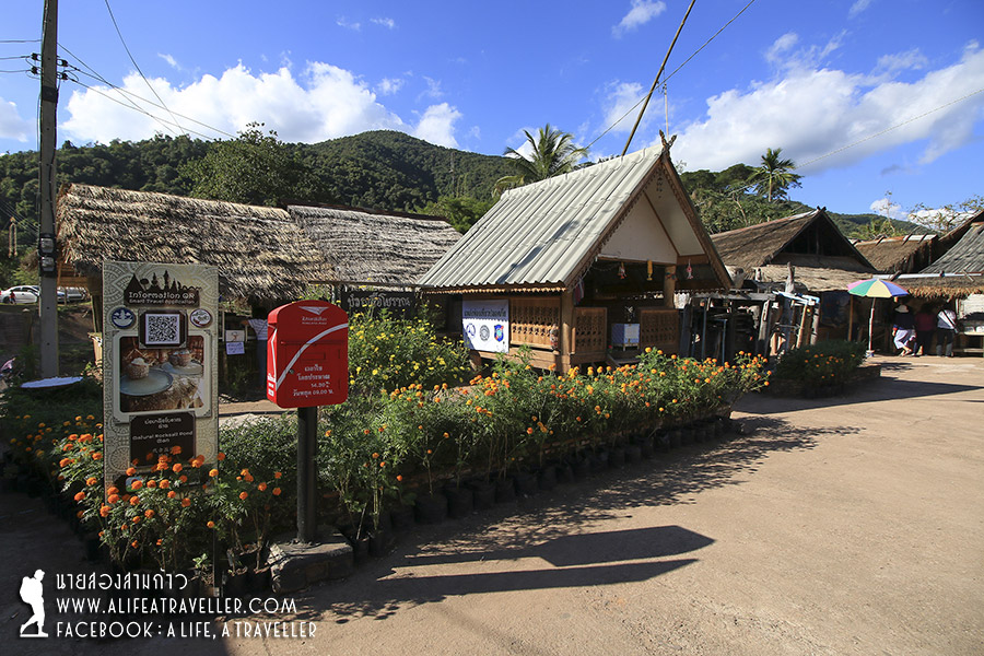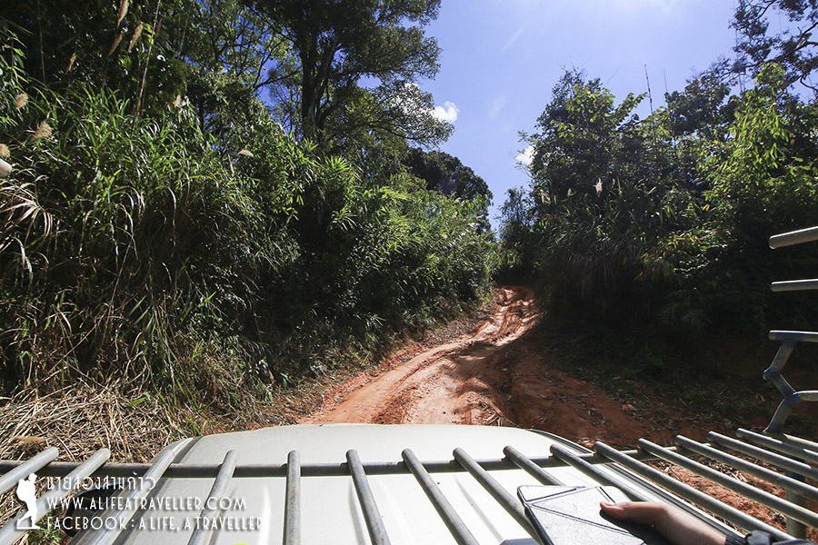 - ระยะทางเดินราวหกกิโลเมตร ผ่านทั้งถนนลูกรัง พื้นที่เกษตร และป่า ใช้เวลาประมาณห้าชั่วโมง