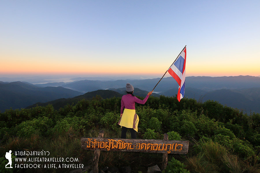 เราตื่นแต่เช้าก่อนสว่างเดินขึ้นยอดภูแว การไม่มีทะเลหมอก (เห็นอยู่หย่อมนึงแบบไกลลิบๆ) เป็นอะไรที่คาดเดาไว้อยู่แล้วเมื่อพิจารณาจากสภาพอากาศซึ่งไม่หนาวมาก