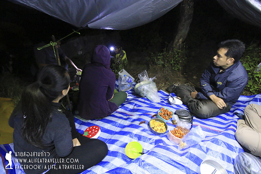 พวกเราตั้งแคมป์ ทำกับข้าว แล้วก็นั่งเม้าส์มอยกันจนสักสองทุ่ม รู้สึกว่าชักหัวเราะเสียงดัง (โดยไม่ต้องกินเหล้าสักหยด) กลัวเกรงใจคนอื่นเลยแยกย้ายเข้าเต็นท์ใครเต็นท์มันดีกว่า ลานกางเต็นท์จะได้กลับมาสงบสุขเสียที