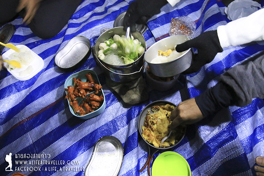 ขำนิดหน่อยก็ตรงที่วันนี้เรานอนอยู่ริมถนนความสูง 1,715 เมตร แต่อากาศดันหนาวกว่าคืนก่อนที่ดั้นด้นเดินตั้งไกลห้าชั่วโมงขึ้นยอดดอยภูแวสูง 1,837 เมตร คราวหลังจะเดินป่าที่ไหนสงสัยผมต้องไปเช็คดวงสักหน่อยแล้วแฮะ (ฮา...)