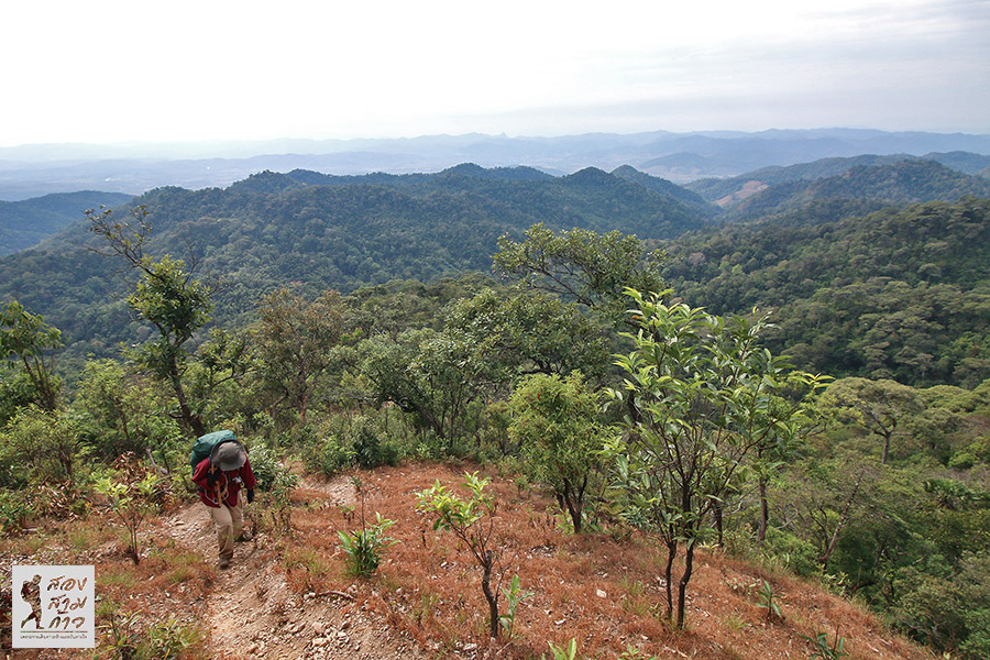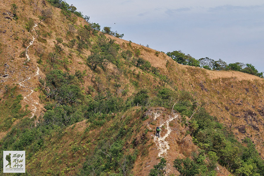 พ้นแนวป่าเนินที่สามขึ้นมาสู่ยอดเขาโล่งๆ พอเห็นเขาลูกข้างหน้าแล้วถึงกับน้องโอ้ว ยิ่งเห็นทางเดินสีขาวๆ ขึ้นสู่ยอดเขาด้วยแล้ว ขอกลืนน้ำลายแป๊บนะ (ฮา...)