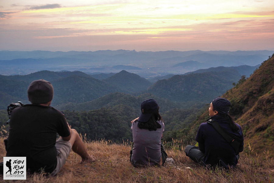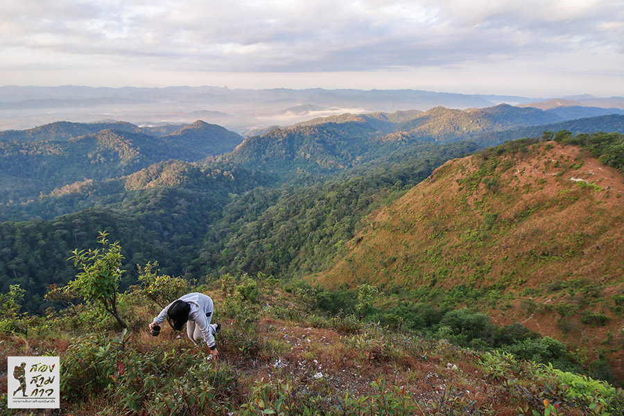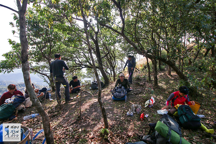 หลังต้มน้ำกินกาแฟ ช่วยกันหุงข้าวทำกับข้าวไว้ส่วนหนึ่ง เจ็ดโมงครึ่งก็พากันเดินขึ้นไปดูวิวบนยอดเขาซึ่งอยู่เหนือจุดตั้งแคมป์ เดินแป๊บเดียวยังไม่ทันเหนื่อยเลย