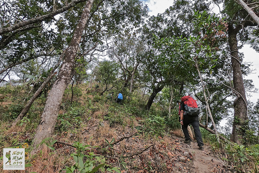 หลังพักกินข้าวเรายังคงเดินขึ้นแบบเรื่อยๆ ทีละนิดละหน่อยอีกประมาณหนึ่งชั่วโมงจึงพ้นช่วงที่เรียกว่า 4 กิโลเมตรแรก ต้องเจอทางชัน 3 กิโลเมตร ที่อุทยานฯ ขู่ไว้สักที