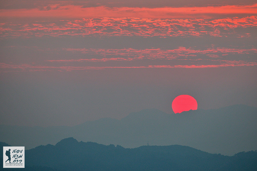 เราอยู่แม่สอด อำเภอชิดขอบตะวันตกของประเทศ ดังนั้นพระอาทิตย์ขึ้นช้าแน่นอน หกโมงลุกจากเต็นท์ออกมาดูว่าวันนี้ไม่มีทะเลหมอก (แห้งแบบนี้จะไปมีได้ยังไง) ก็เข้าไปเกลือกกลิ้งต่อ สักใกล้ๆ เจ็ดโมงโน่นแน่ะค่อยออกมาขยี้ตาอรุณสวัสดิ์วันใหม่