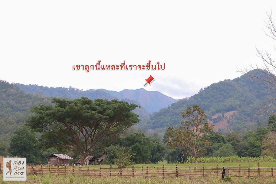 ใกล้บ่ายสอง พ้นเนินที่สองขึ้นมาจะมองเห็นภูเขาสีทองอยู่ไม่ใกล้ไม่ไกล นั่นแหละคือดอยมณฑา และจุดที่เราจะตั้งแคมป์กัน