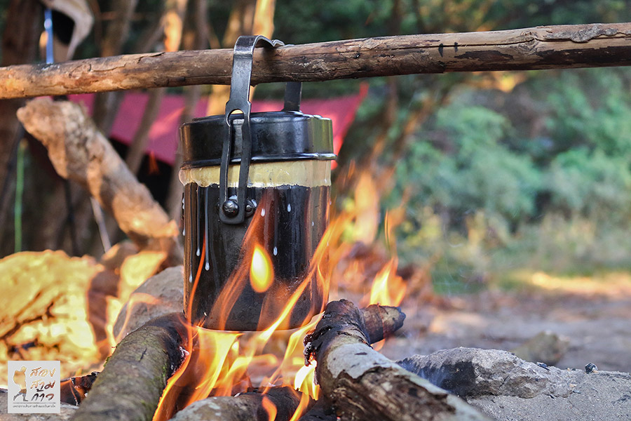 ถึงยอดคลุยโจโม แดดแรงๆ แบบนี้นั่งพักหลบร่มต้มกาแฟร้อนๆ กินกันเถอะ บ้าไปแล้วอากาศร้อนดันจิบกาแฟร้อนอีก