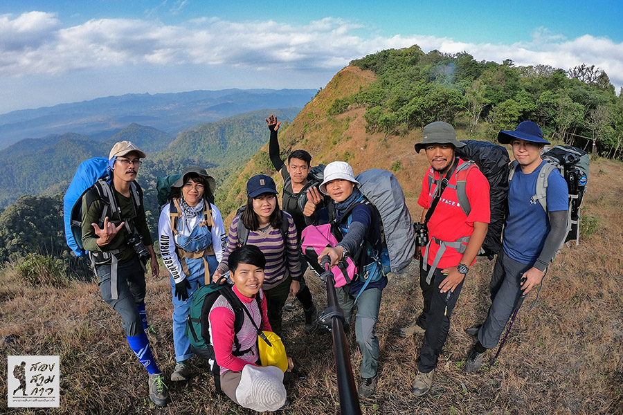 กินข้าว เก็บแคมป์ ทำความสะอาดพื้นที่ 9.27 น. เป็นเวลาที่ผมถ่ายภาพหมู่ของพวกเราบนดอยเป็นภาพสุดท้าย ได้เวลาเซย์กู๊ดบายความสวยของภูเขาสีทองลูกนี้แล้ว