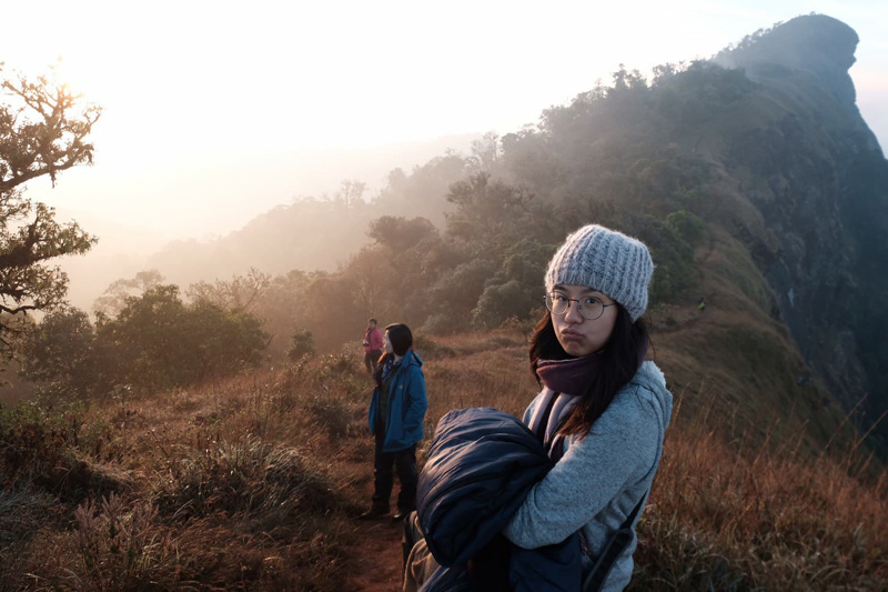 ตอนเช้าหนาวมากก เตรียมเสื้อหนาวกันมาไม่พอ ก็หอบถุงนอนเดินห่มไปค่ะ 555