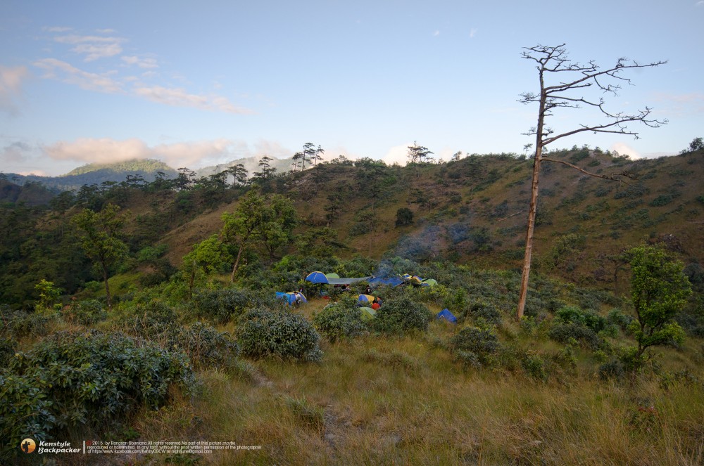 camp ลังกาหลวงตั้งอยู่ในหุบเชิงเขา ภูมิประเทศเป็นป่าดิบเขา มีแหล่งน้ำไม่ไกลนัก เรามาถึงเอาบ่ายโมงจัดแจงตั้ง camp ทำอาหารมื้อหลางวันกินกันก่อน แล้วนั่งเล่นนอนเล่นรอเวลาประมาณ 4 โมงค่อยขึ้นยอดลังกาหลวง