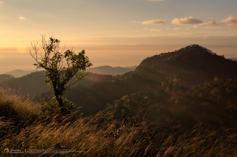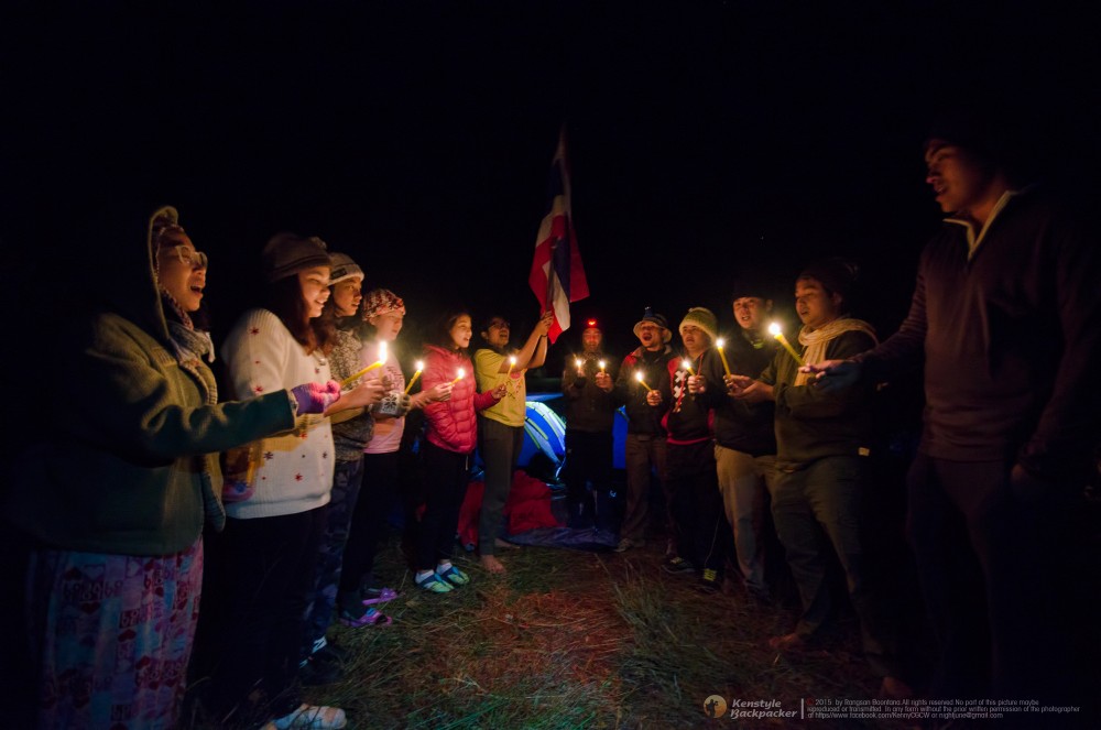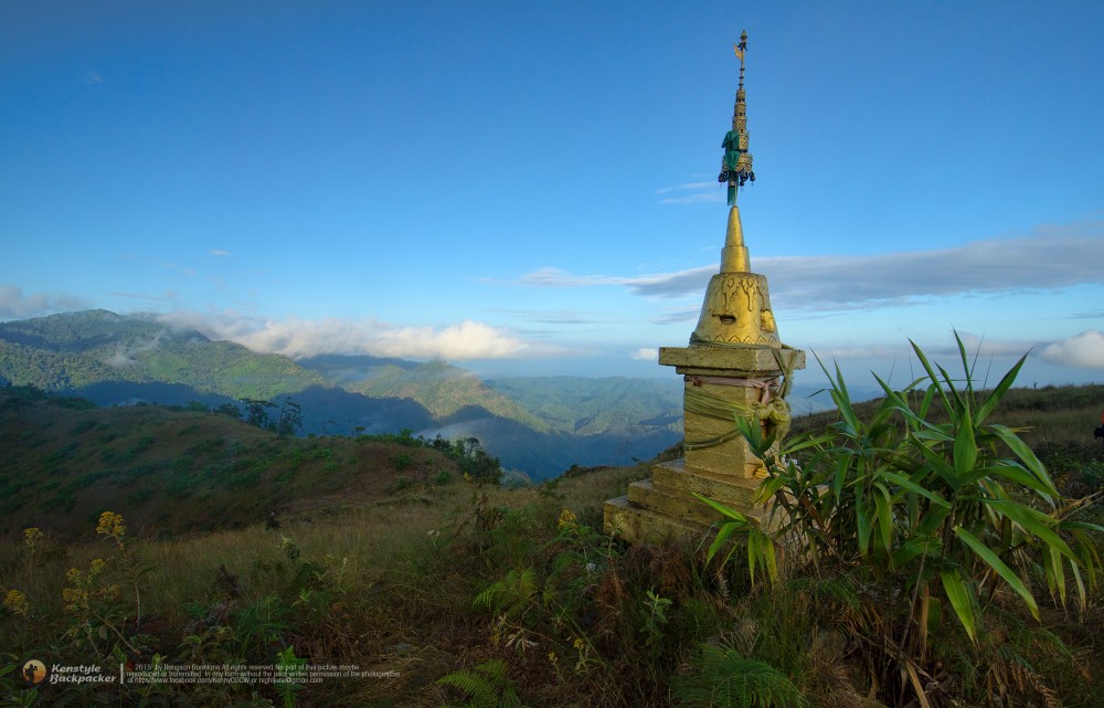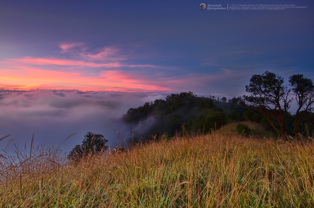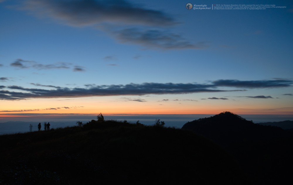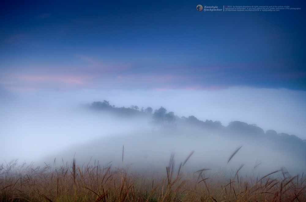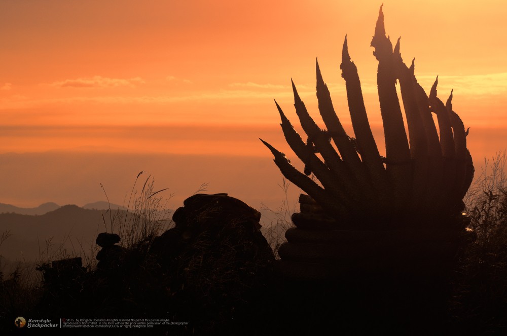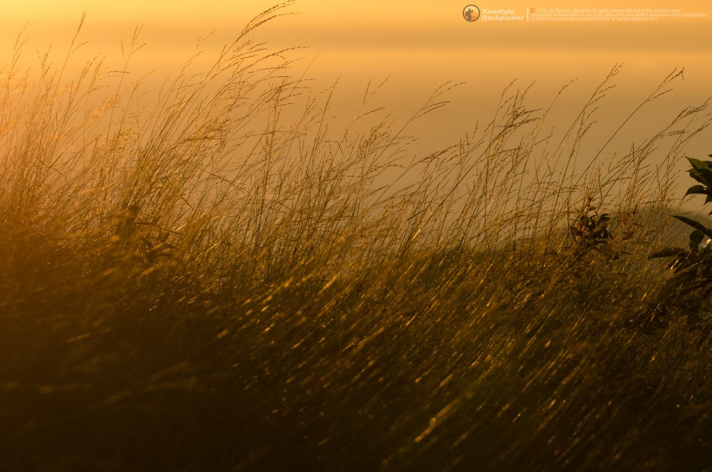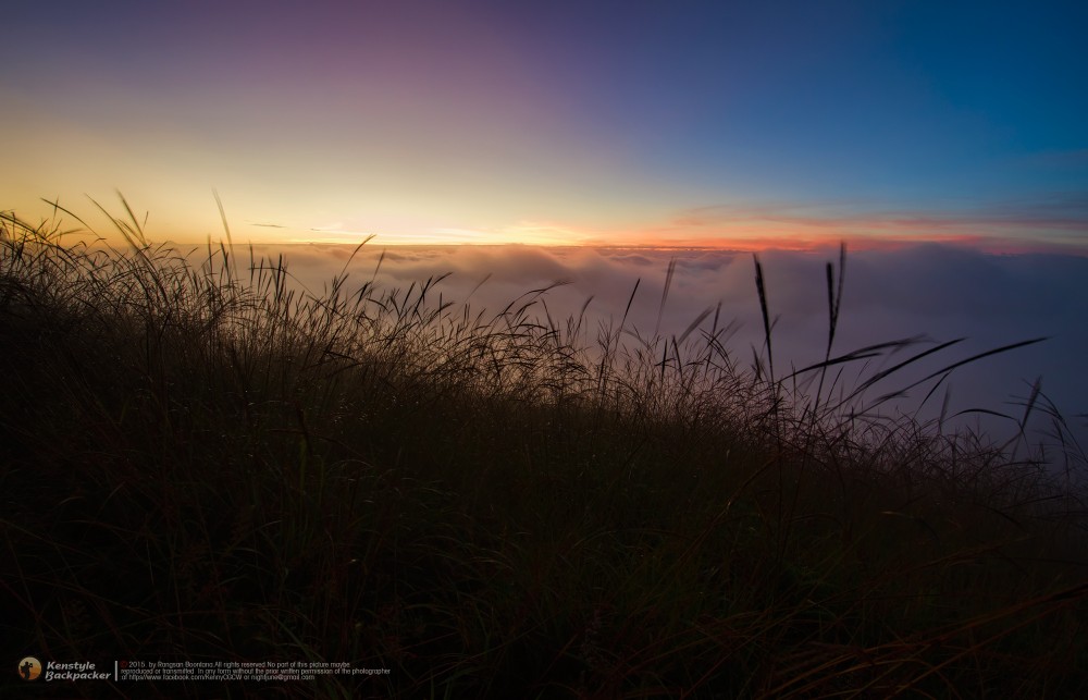 คืนนั้นผมนอนหลับสบาย ไร้สิ่งรบกวน แต่เต้นท์อีกฝั่งที่นอนอยู่ตรงลานพระพุทธรูปเมื่อคืนมีเรื่องเล่าที่เจอะเจอตอนกลางคืน แต่จะไม่ขอพูดถึง เพราะถ้าเราอยู่คนล่ะคลื่นก็ไม่มีโอกาสได้เจอ มันไม่ใช่จะมีโอกาสได้เจอกันทุกคน แต่ที่ตรงนี้ค่อนข้างแรงพอสมควร เพราะก่อนหน้านั้นก็เคยได้ยินกันมาหลายทริปแล้ว.. ตัดกลับมาที่เช้าวันรุ่งขึ้น ตอนตี 5 เริ่มเดินขึ้นยอดอีกครั้งระยะทางเกือบ 1 กิโลก็เหนื่อยพอสมควรเพราะเดินไต่ขึ้นไปถึงเนินธงแล้วเดินลงหุบอีกครั้งแล้วก็ไต่ขึ้นยอดลังกาหลวง เราจับจองหามุมกันมุมใครมุมมัน แต่ต้องระวังให้มากเพราะมุมที่มองเห็นพระอาทิตย์ขึ้นมันอยู่ระหว่างทางก่อนขึ้นไปถึงจุดสูงสุดสัก 100 เมตรต้นหญ้ามันจะบัง ถ้าเราเดินเข้าไปในดงหญ้าต้องระวังเพราะอาจจะเหยียบเอาอากาศลอยละลิ่วร่วงลงไปยังหุบเหวเบื้องล่างโดยไม่รู้ตัว