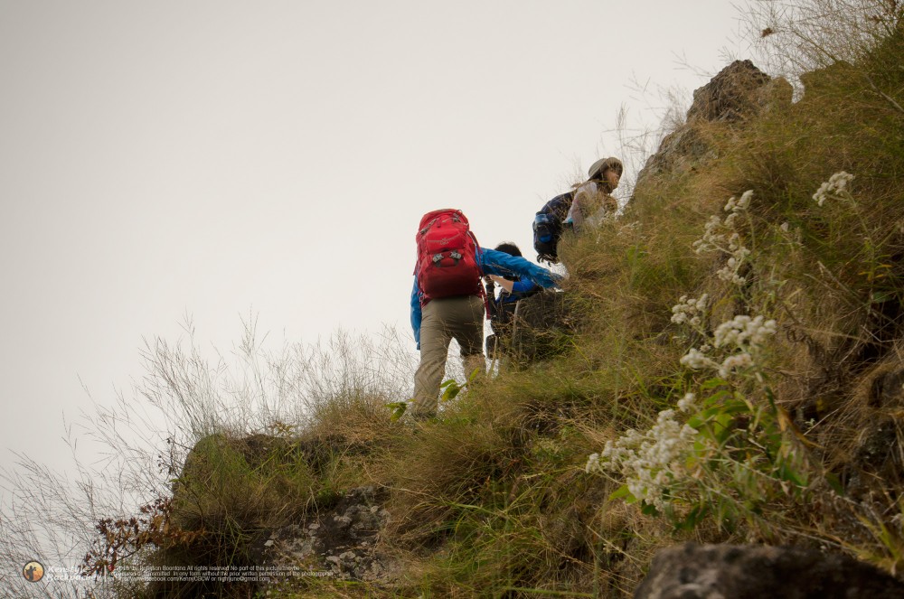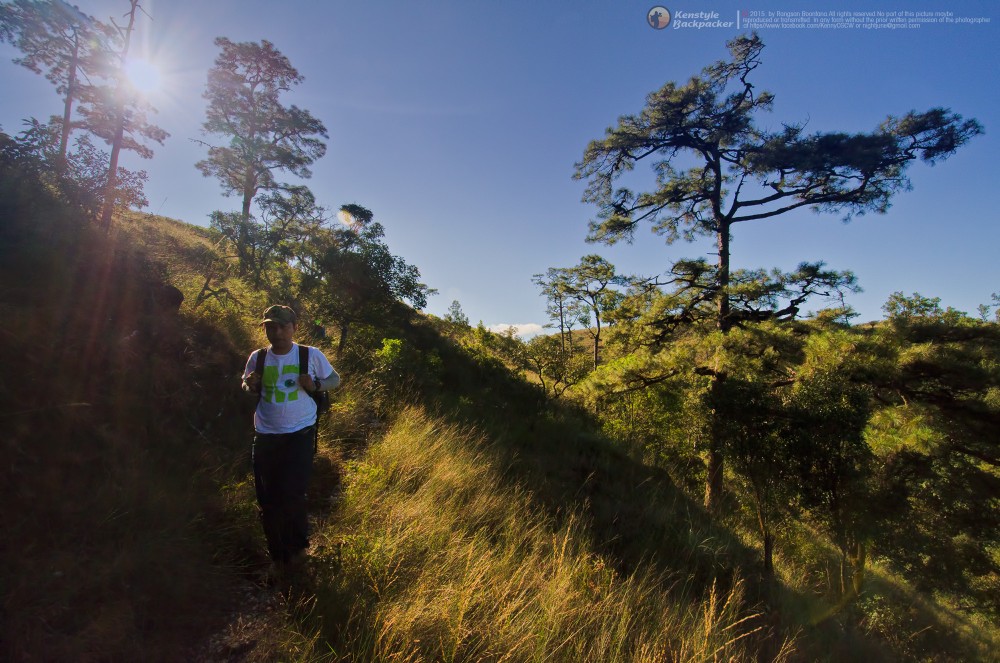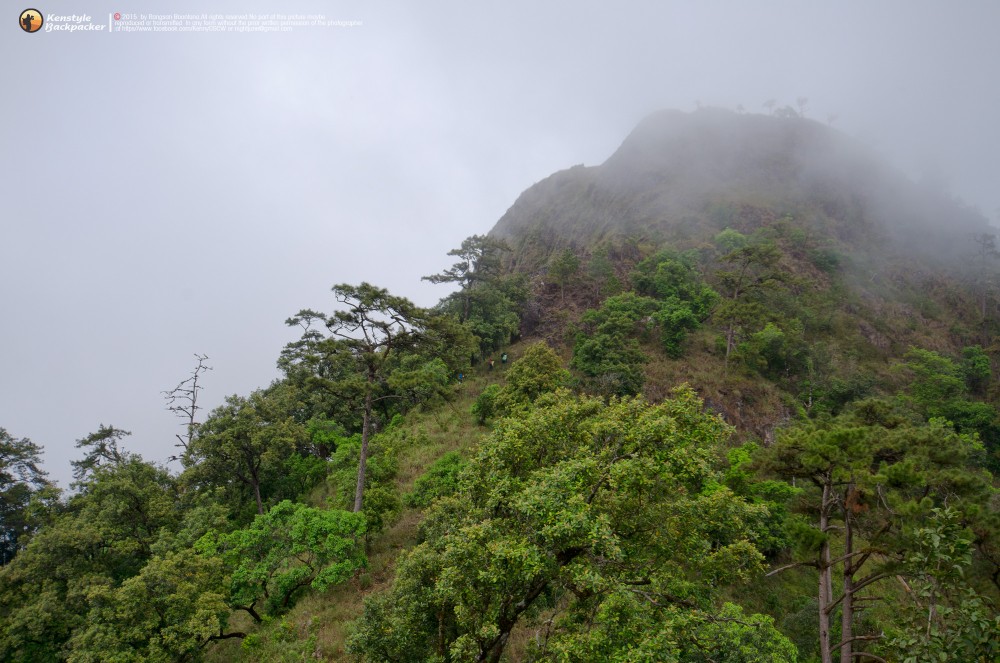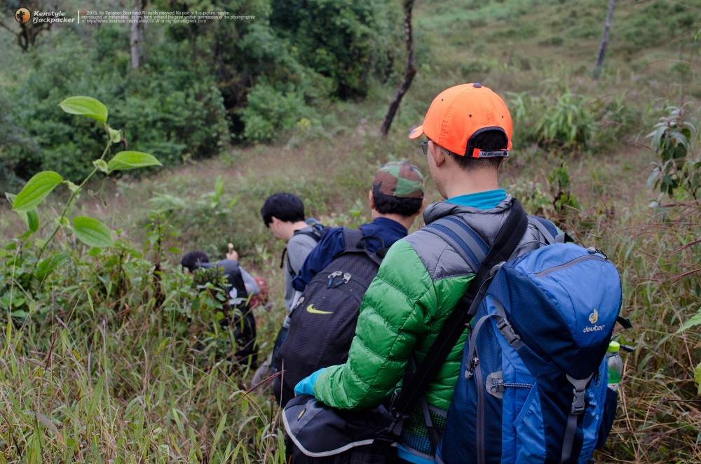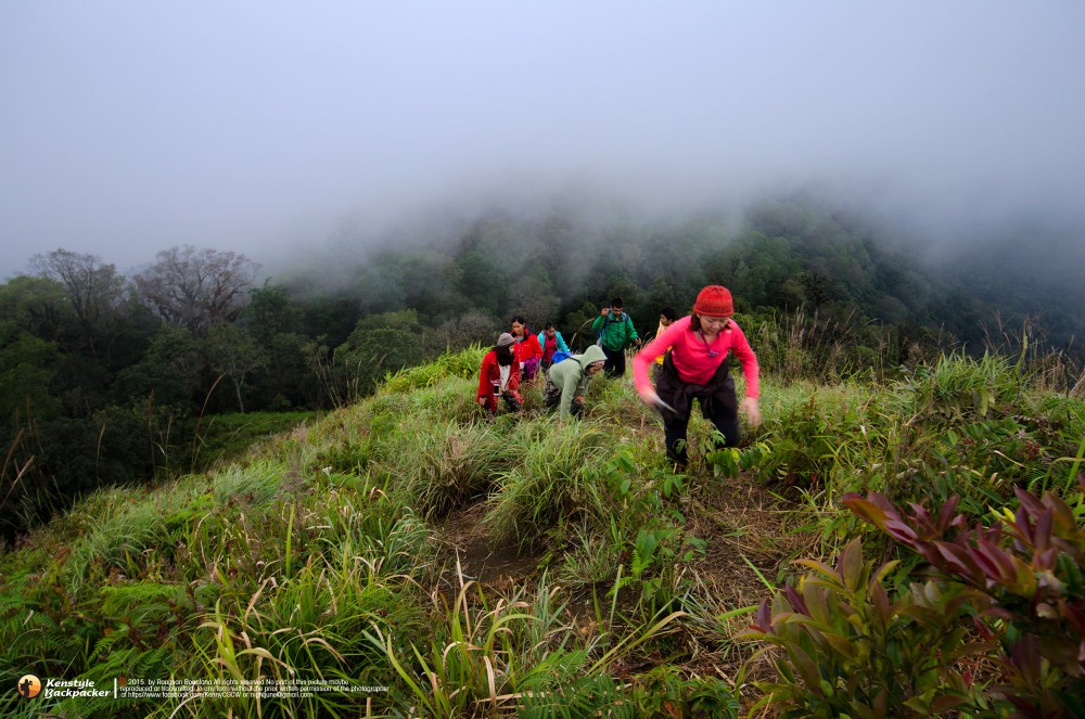 หลังจากดูท่าทีของสภาพอากาศเช้าวันนั้นแล้วคิดว่าคงจะไม่เปิดง่ายๆ พวกเราจึงตัดสินใจเดินลงกัน ตอนเดินลงต้องเดินให้ดีเพราะทางที่เปียกไปด้วยน้ำค้าง เส้นทางจะค่อนข้างลื่นเป็นพิเสษเล่นเอาหลายคนก้นจ้ำเบ้าไปตามๆกัน