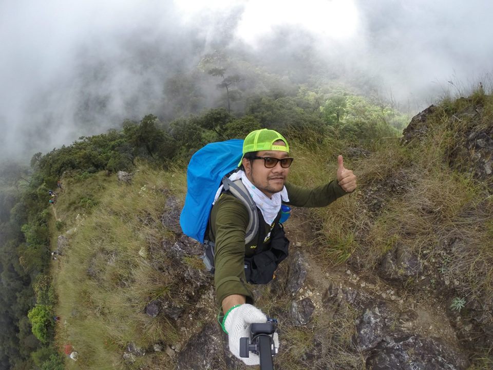 4 โมงเราออกจากแคมป์ เดินทางขึ้นยอดลังกาหลวง อีกประมาณกิโลนึง ผมเดินขึ้นไปตรงถึงเนินธงทางซ้ายจะตัดลงหุบไปขึ้นยอดลังกาหลวง สภาพอากาศเห็นแล้วท้อใจมองลงไปในหุบไม่เห็นอะไรเลย ฟ้าปิดเหมือนเมื่อวานแต่วันนี้ทำท่าจะหนักกว่า ผมตัดสินใจเตร็ดเตร่หามุมถ่ายภาพอยู่ที่เนินธงไม่ไปต่อ แต่ก็ทัศนวิสัยทำให้ทำอะไรไม่ได้มากนัก ปล่อยให้น้องๆวัยกำลังสดไปทำตามฝันกันก่อน พรุ่งนี้ผมค่อยขึ้นตอนเช้าดีกว่า (ข้ออ้างของคนเริ่มแก่ 55 ) ได้ยินแต่เสียงจากน้องๆทางยอดฝั่งลังกาหลวงนู้น ส่งเสียงเฮฮาเจีียวจ๊าวกันน่าสนุก ทนไม่ไหว..เดินลงไปช่วยทำกับข้าวกับจ่าหมูที่ด้านล่างดีกว่า
