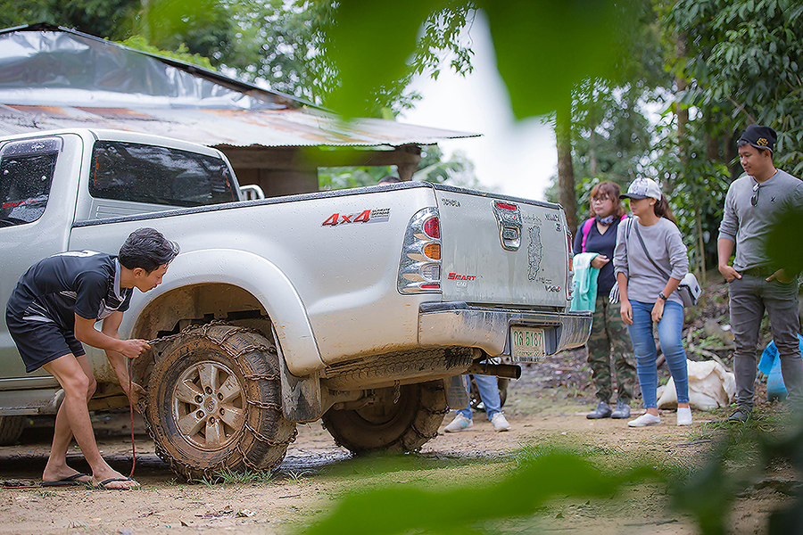 วันที่สอง เจอฝนถล่มทั้งคืน ถนนเละ ถึงขั้นต้องพันโซ่ล้อรถ ก่อนขึ้นไปยังจุดชมวิว