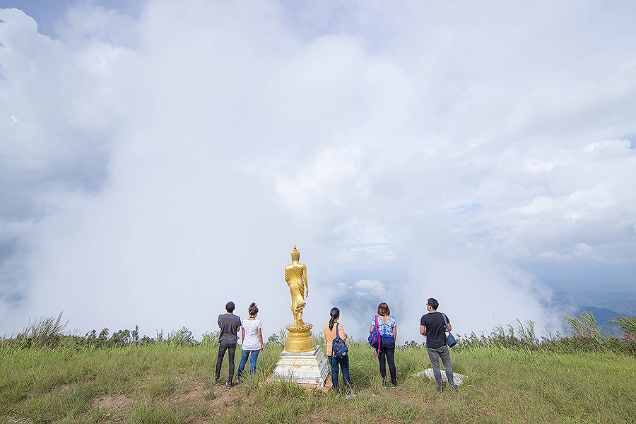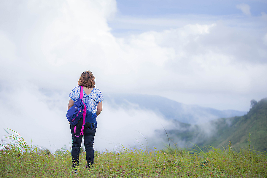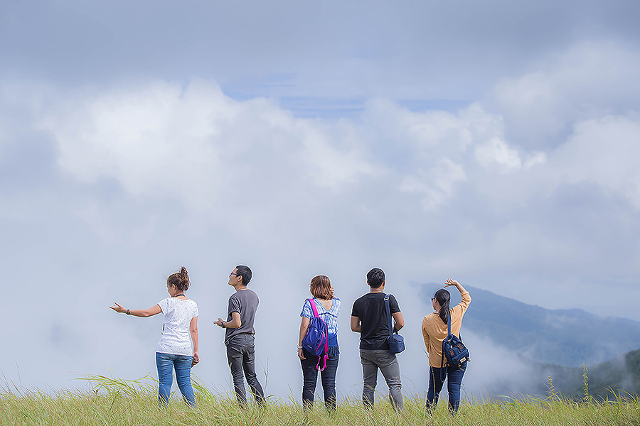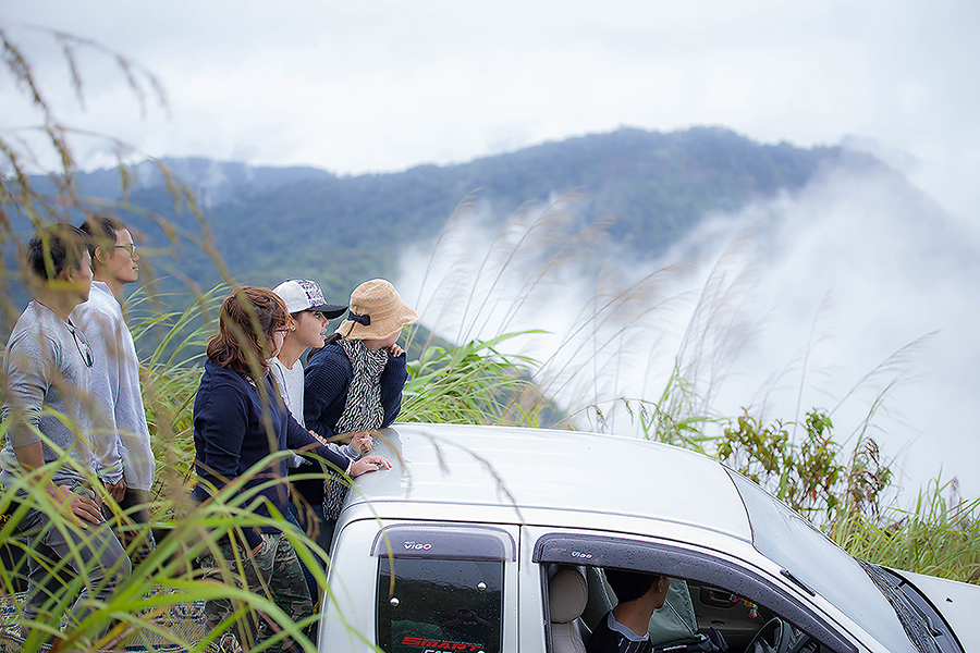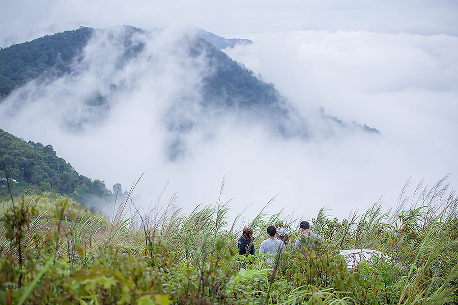 ก็จะมีหมอกลอยขาวฟุ้งจนมองอะไรแทบไม่เห็น แต่บางครั้งฟ้าก็เปิดให้ได้เห็นทะเลหมอกสลับกับเนินเขาและทิวหญ้า