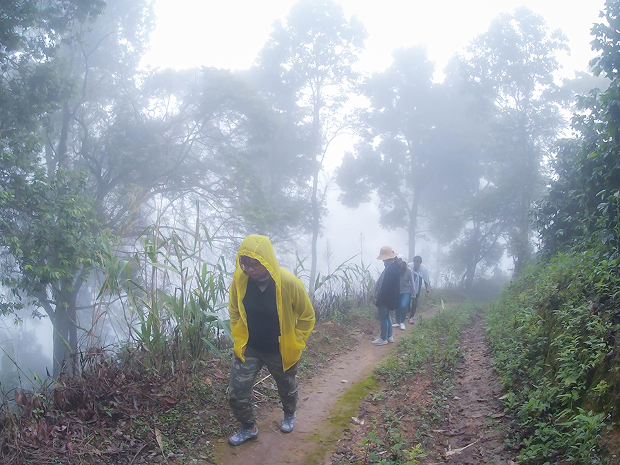 สภาพอากาศเปิดเป็นบางช่วง แต่บนยอดดอยอากาศปิด หมอกฟุ้งขาวโพลน มองไม่เห็นอะไรเลย