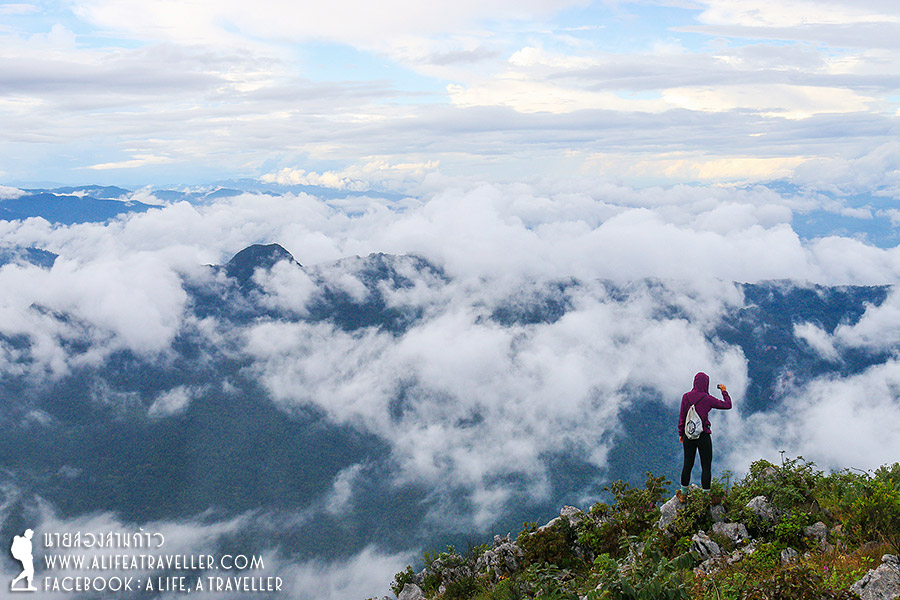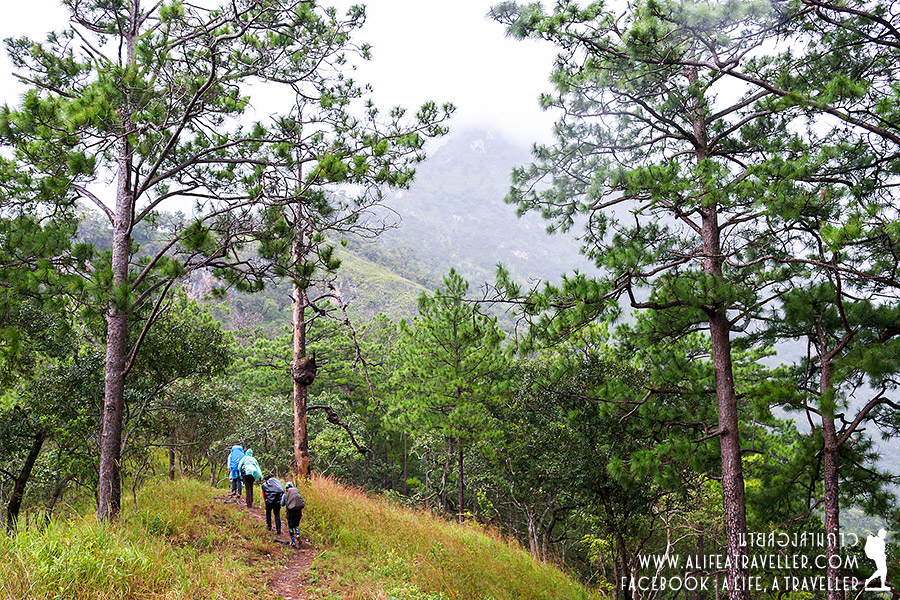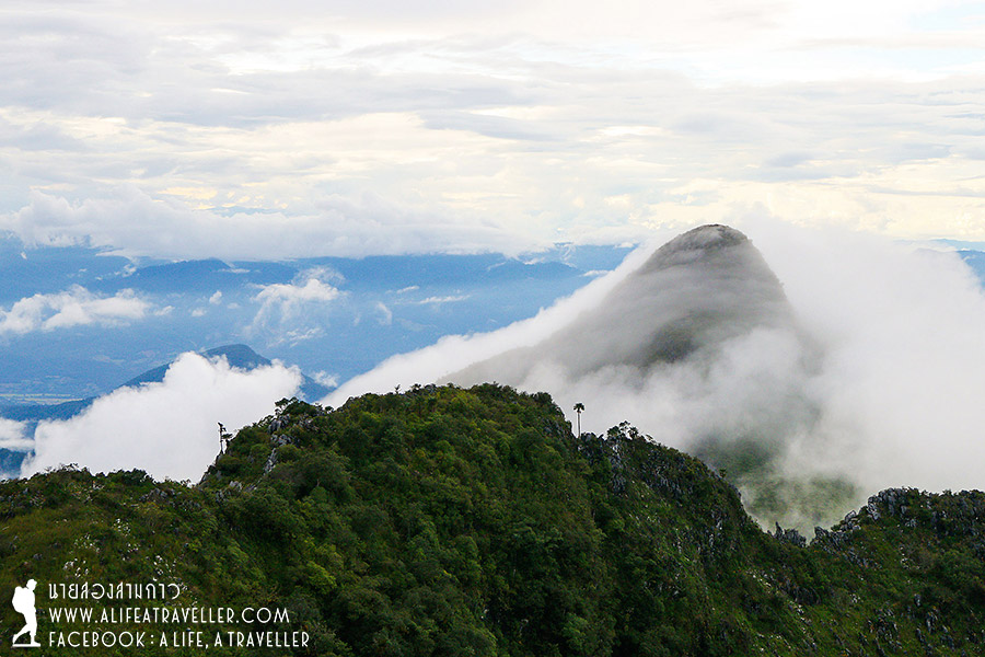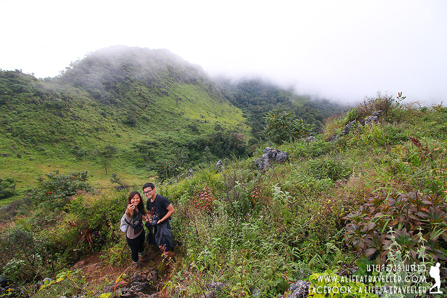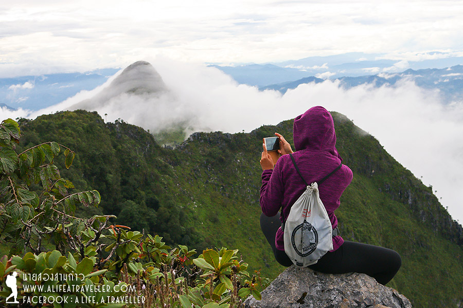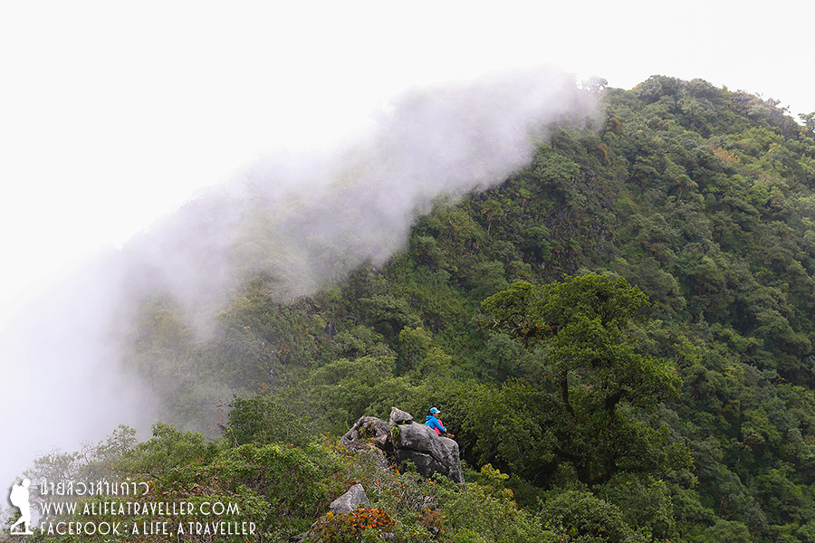 ช่วงก่อนเดินขึ้นหมอกยังปกคลุมไม่เห็นยอด แต่พอขึ้นมาเรื่อยๆ ก็มีแววดีอย่างที่เจ้าหน้าที่บอก อากาศเริ่มเปิด บรรยากาศสดชื่นสวยงามมาก ถ่ายรูปกันเพลิน