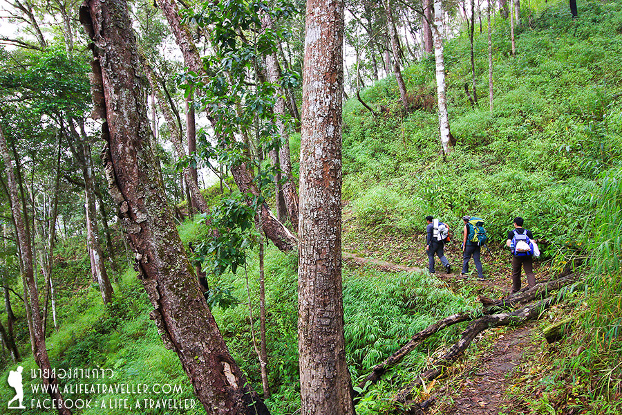 ขาลงเร็วแต่ลื่น วัดพื้นกันคนละสองสามครั้งตามระเบียบ และเมื่อมาถึงทางลงทางปางวัวที่เขาว่าปราบเซียนหนักหนาก็เป็นไปอย่างยากลำบาก ฝนตกหนักหลายวันทำให้ทางเละเทะเหมือนเดินลุยสไลเดอร์ปลักโคลนยังไงยังงั้น ถึงขนาดผมต้องเก็บกล้องใส่กระเป๋ามิดชิดไม่ได้หยิบออกมาถ่ายสักรูป ยากขนาดนั้นล่ะนะคิดเอาแล้วกัน (ฮา...)