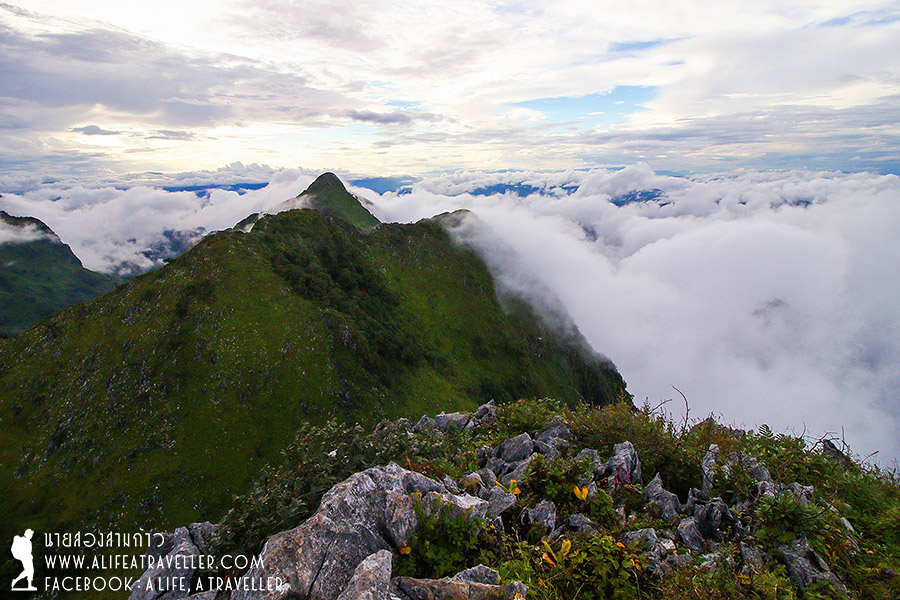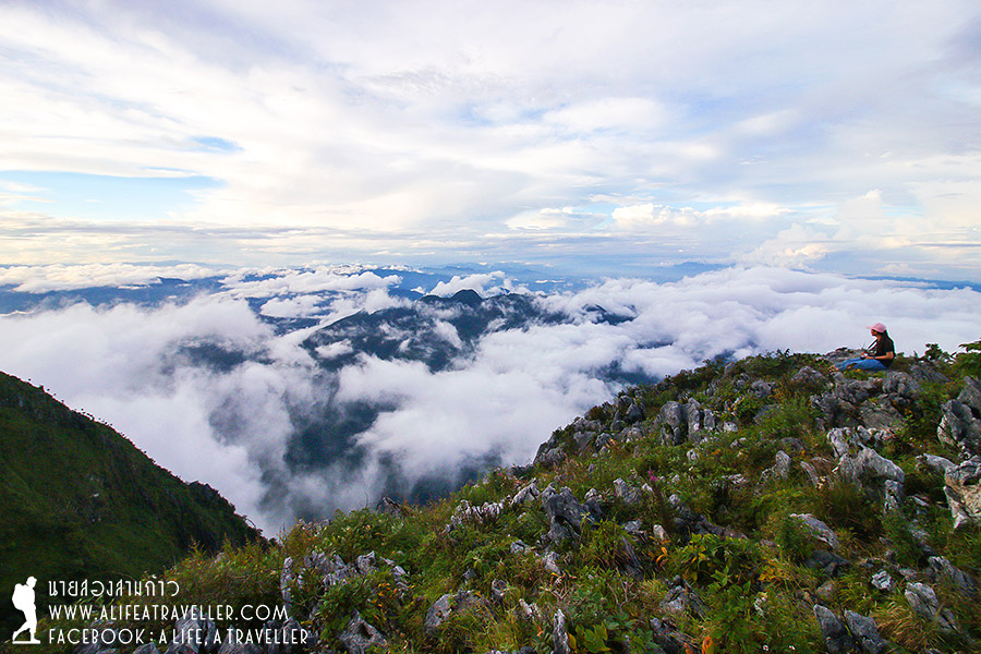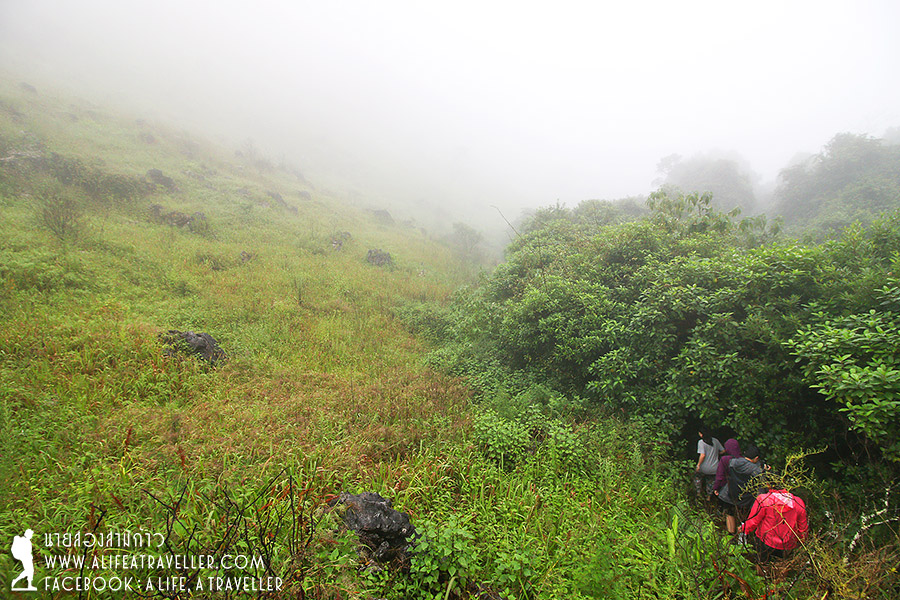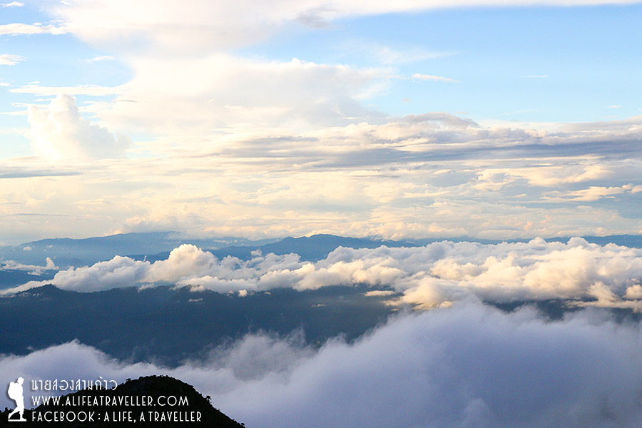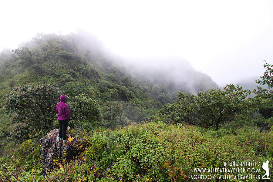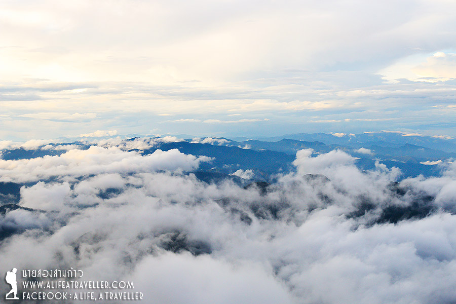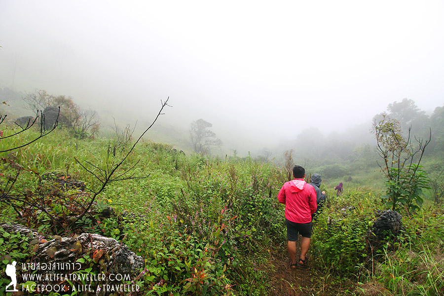 เรากำลังพักผ่อนเรื่อยเปื่อยอยู่ที่เต็นท์ตอนที่ฝนตกกระหน่ำอีกรอบประมาณครึ่งชั่วโมง ทว่าหลังจากฝนหยุดอากาศเริ่มมีเค้าลางว่าจะดีขึ้น เจ้าหน้าที่บอกว่าดูจากท้องฟ้าแล้วช่วงเย็นๆ ฟ้าคงเปิดให้เห็นอะไรดีๆ ได้ยินแบบนั้นกำลังใจเรามากขึ้นเยอะ พอนาฬิกากระดิกถึงบ่ายสามโมง เราตัดสินใจกันว่าควรเดินขึ้นยอดดอยได้แล้วล่ะ