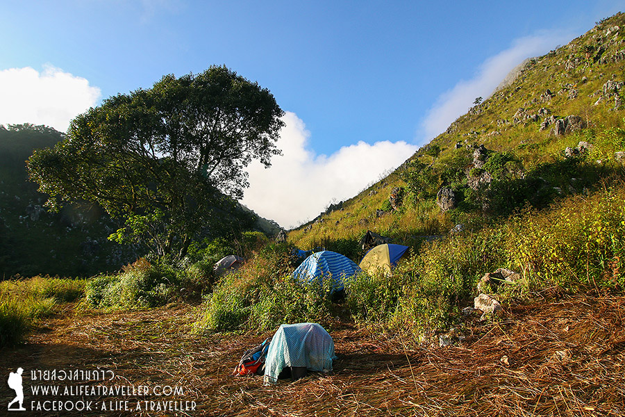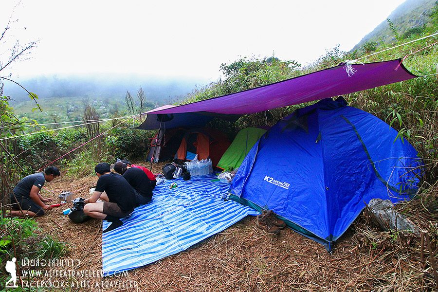 คืนนั้นฝนยังคงตกๆ หยุดๆ เราตื่นเช้ามาโดยมีหมอกขาวห่มคลุมสดชื่นดีไม่น้อย กินข้าวมื้อสุดท้ายพร้อมทำเสบียงไว้กินกลางทางมื้อเที่ยง เก็บข้าวของ เก็บขยะ อะไรที่เราเอามาก็ต้องเอาลงไปด้วย