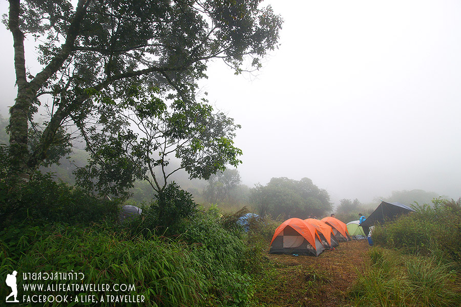ฝนตกหนักตลอดทั้งคืนเหมือนที่กรมอุตุฯ ว่าไว้ ความหวังจะไปดูพระอาทิตย์ขึ้นเหือดหาย โผล่ออกมาจากเต็นท์ตอนเช้าหมอกก็ขาวโพลนไปทั่วพื้นที่