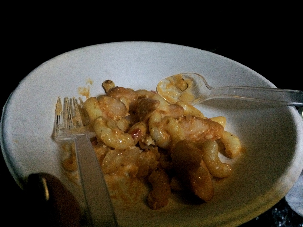 และแล้วเราก็เดินมาถึงลานกางเต็นท์แล้ว มาถึงก็มืดสนิทพอดี เราหาทำเลเหมาะๆ ที่สามารถตั้งเป็นแคมป์ของเราได้และจัดการกางเต็นท์ ทำอาหารด้วยเมนูง่ายๆ "ผัดมะกะโรนีใส่ไส้กรอก" ด้วยอาการที่เหนื่อยล้าจากการเดินมาแล้ว และในวันพรุ่งนี้เช้าเราต้องรีบตื่นได้รับแสงของวันใหม่