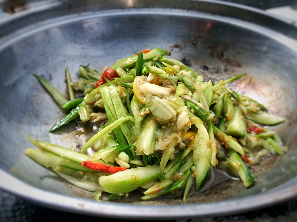 เมนู "ตำแตง" แลกเปลี่ยนจากเต็นท์ใกล้เรือนเคียง