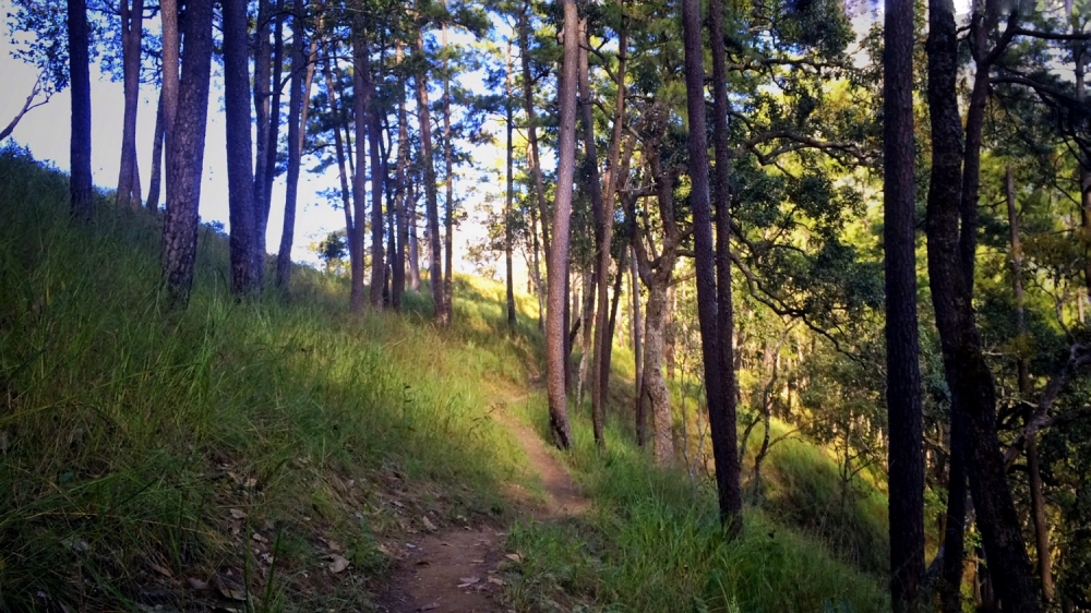 เราเดินผ่านภูเขา ผ่านป่าทึบ จนเดินมาถึงที่โล่งๆ มีต้นหญ้าสูงๆ ขึ้นมากมาย ลักษณะทางจะเป็นทางราบมีบางช่วงที่เป็นทางลาด ถือว่าช่วงนี้เดินสบาย บรรยากาศในตอนนี้ก็เริ่มร่มรื่น ไม่ค่อยมีแสงแดด อาจเป็นเพราะใกล้เวลาเย็นแล้วด้วย
