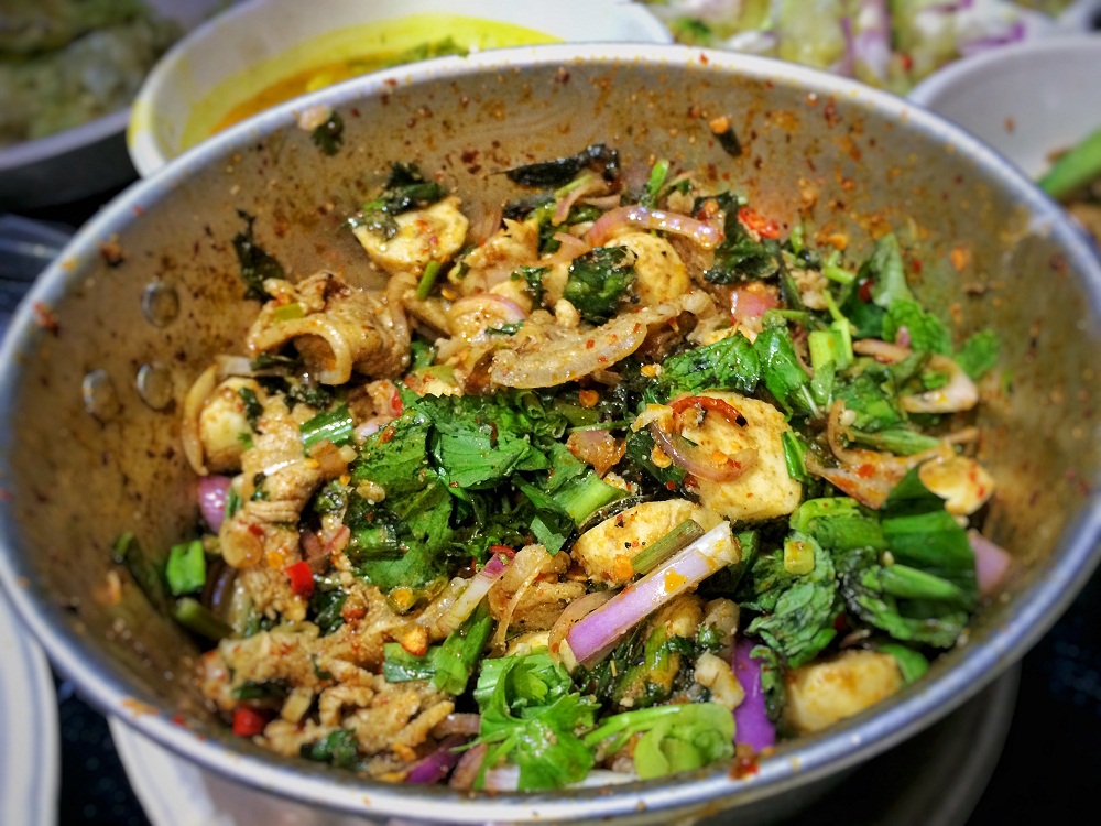ลาบหมูรสชาติจัดจ้าด ซะใจมาก พริกผงที่แวะซื้อจากตลาดแม่มาลัยหอมมาก แซ่บถึงทรวง