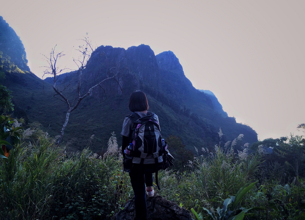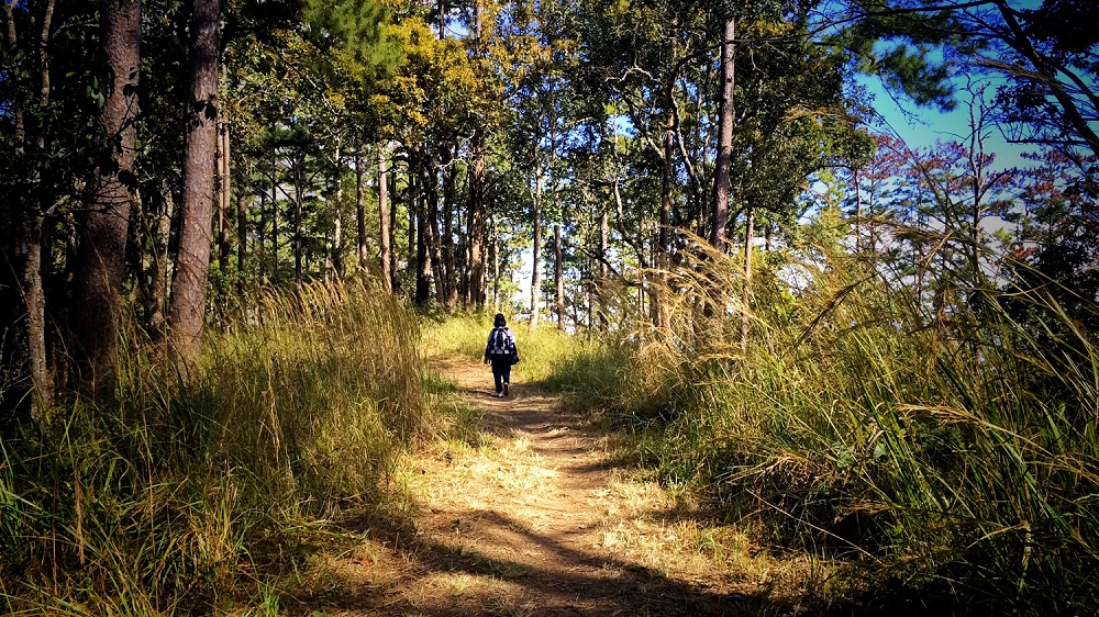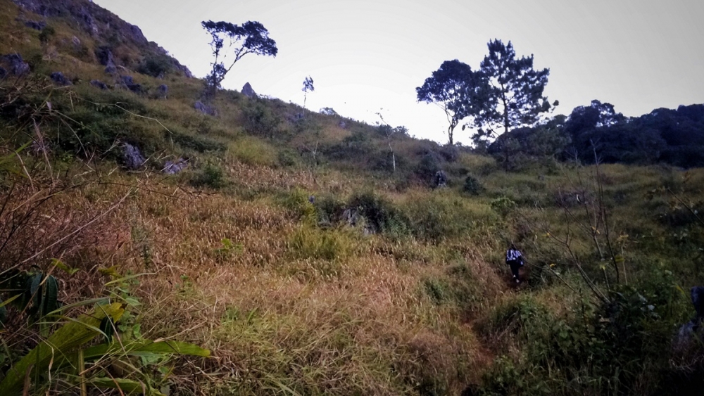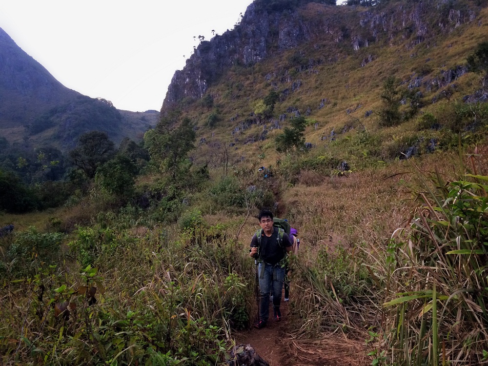 แวะถ่ายรูปเพลิดเพลินกับบรรยากาศได้ซักพัก ก็ต้องขึ้นเขาอีกครั้ง เรารีบเดินเร่งฝีเท้ากันมากขึ้น กลัวจะมืดระหว่างทาง เพราะต้องเดินข้ามสันเขาไปอีกใช้เวลาสักพักถึงจะเจอบริเวณลานกางเต็นท์
