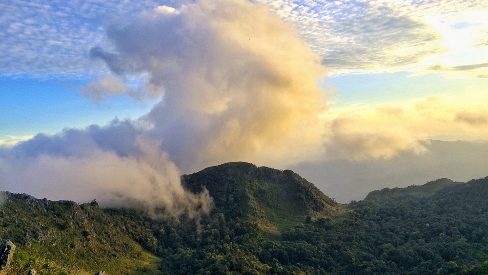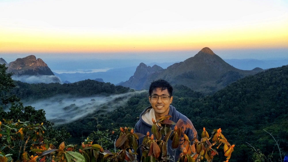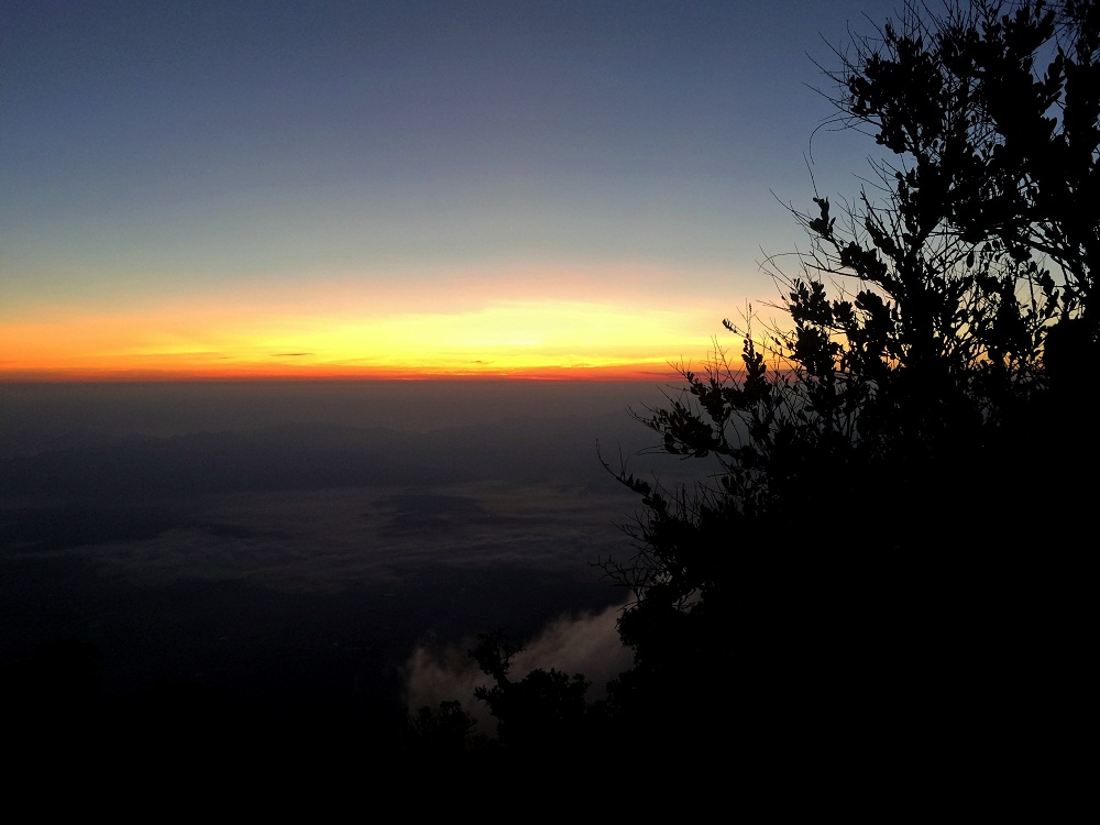 เราเดินข้ามผ่านเขาลูกนั่นลูกนี้มาเรื่อยๆ จนเจอพระอาทิตย์กำลังจะลับระหว่างช่องภูเขาไป แต่บรรยากาศโดยรอบยังไม่ค่อยมืดมากนัก