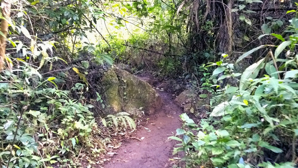 สองข้างทางก็จะเป็นต้นไม้น้อยใหญ่ที่แผ่กิ่งก้านออกมาบดบังแสงแดด มีเครือเถาวัลย์มากมายเลื้อยไปตามกิ่งก้านของต้นไม้ระโยงระยาง ก้อนหินเล็กใหญ่วางเรียงเป็นกองอยู่ระหว่างทาง เหมือนถูกธรรมชาติจัดวางเรียงรายเอาไว้อย่างสมบูรณ์