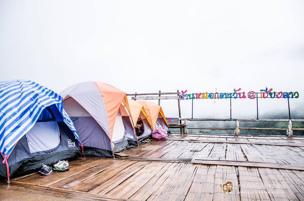 แต่พอปิดไฟเท่านั้น บรรยากาศรอบข้างก็เป็นของเรา เปิดเต๊นท์นอนดูดาวได้ตามสะดวก มีแค่เสียงหมูเล้าข้างๆ เป็นเพื่อน จุดกางเต๊นท์ของโฮมสเตย์ ตื่นเช้ามาเซย์ฮัลโหลกับทะเลหมอกได้เลย